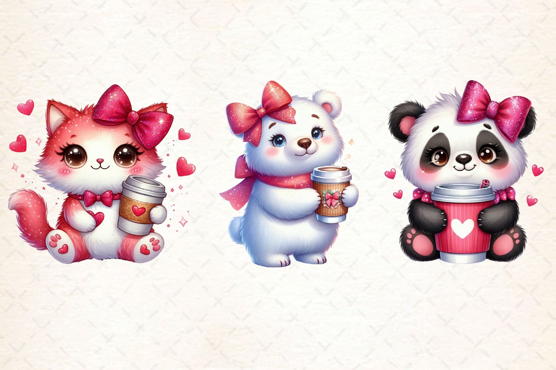 Animals enjoying Valentine coffee for romantic beverage projects.