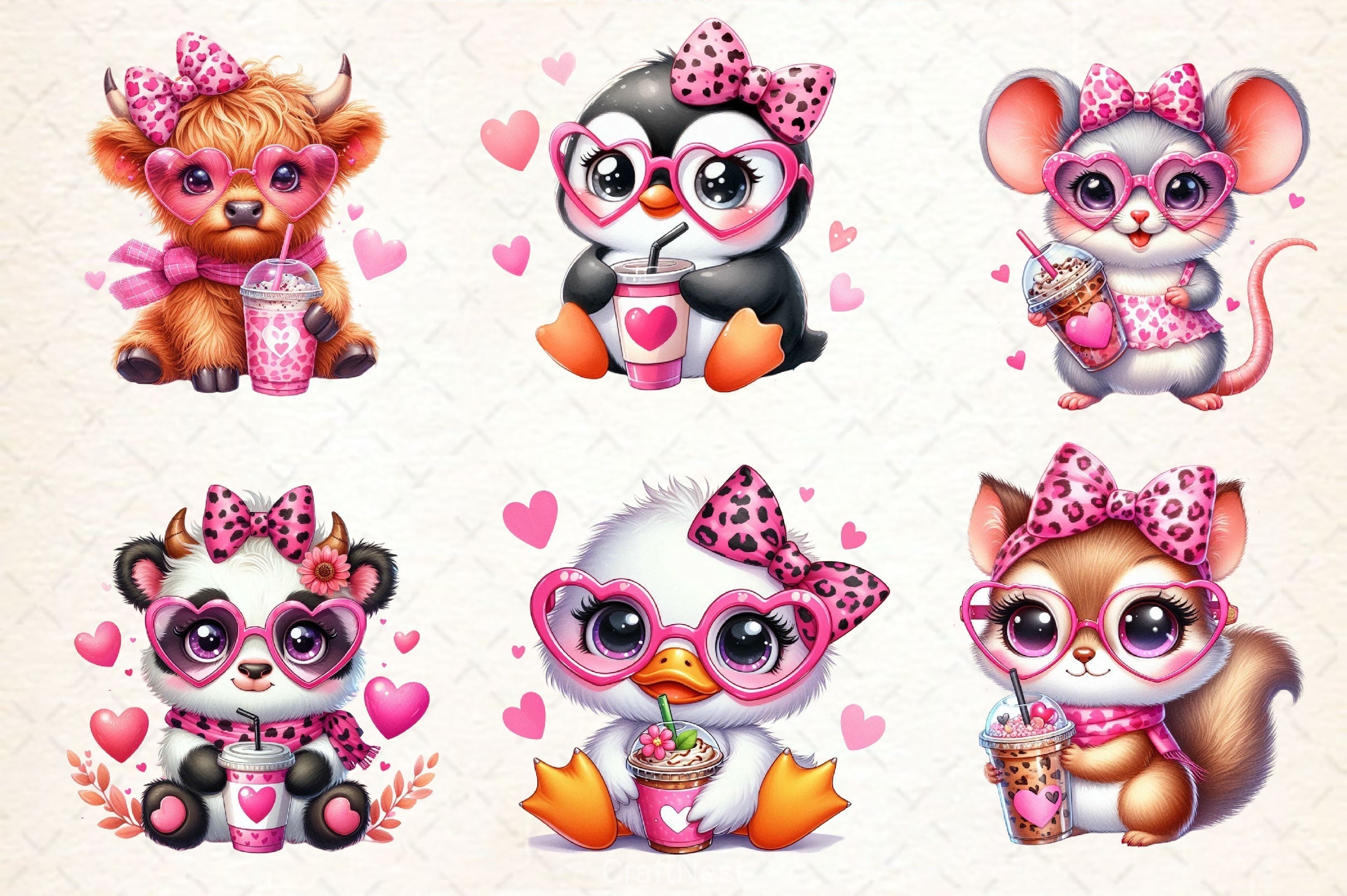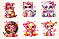 Love with this Animals Valentine Coffee Clipart Bundle, featuring romantic animal coffee designs, perfect for pet valentine crafts.