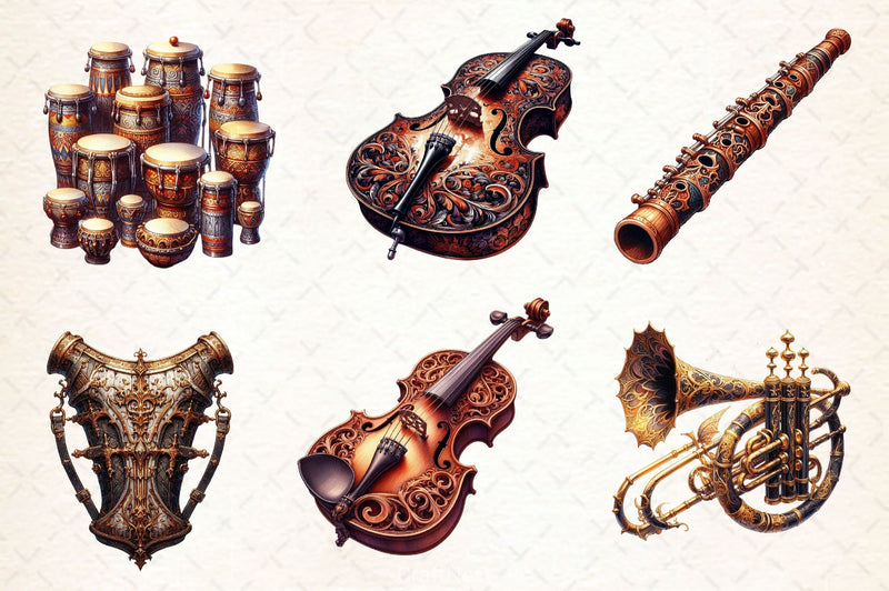Play with this Antique Gothic Instruments Clipart Bundle, featuring vintage dark music designs, perfect for gothic musical crafts.