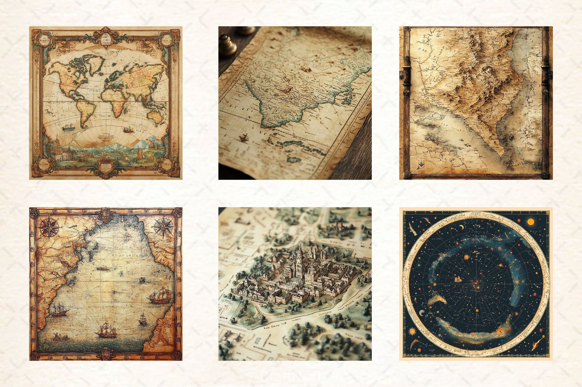 Vintage antique map digital papers perfect for travel and historical themed crafting.