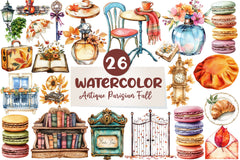 Romance with this Antique Parisian Fall Clipart Bundle, featuring French autumn designs, perfect for vintage European crafts.