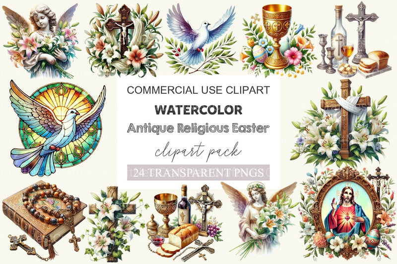 Worship with this Antique Religious Easter Clipart Bundle, featuring vintage religious designs, ideal for spiritual Easter crafts.
