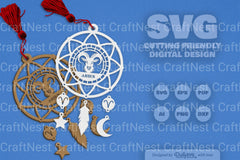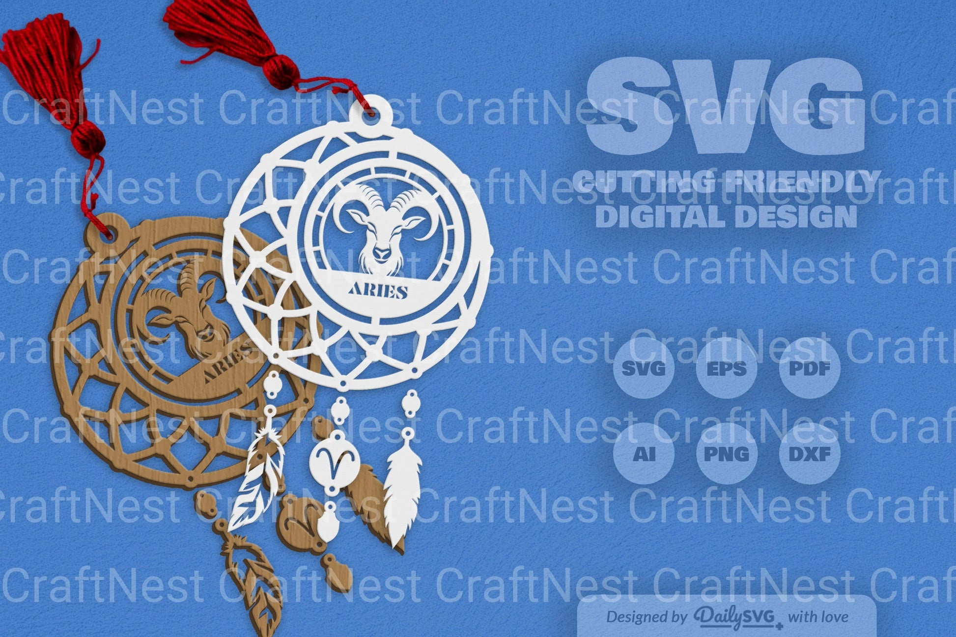 Capture celestial charm with the Aries Dream Catcher Laser Cut Clipart Set, featuring intricate designs perfect for mystical home decor and creative projects.