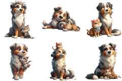 Australian Shepherd and Kitten Clipart Bundle