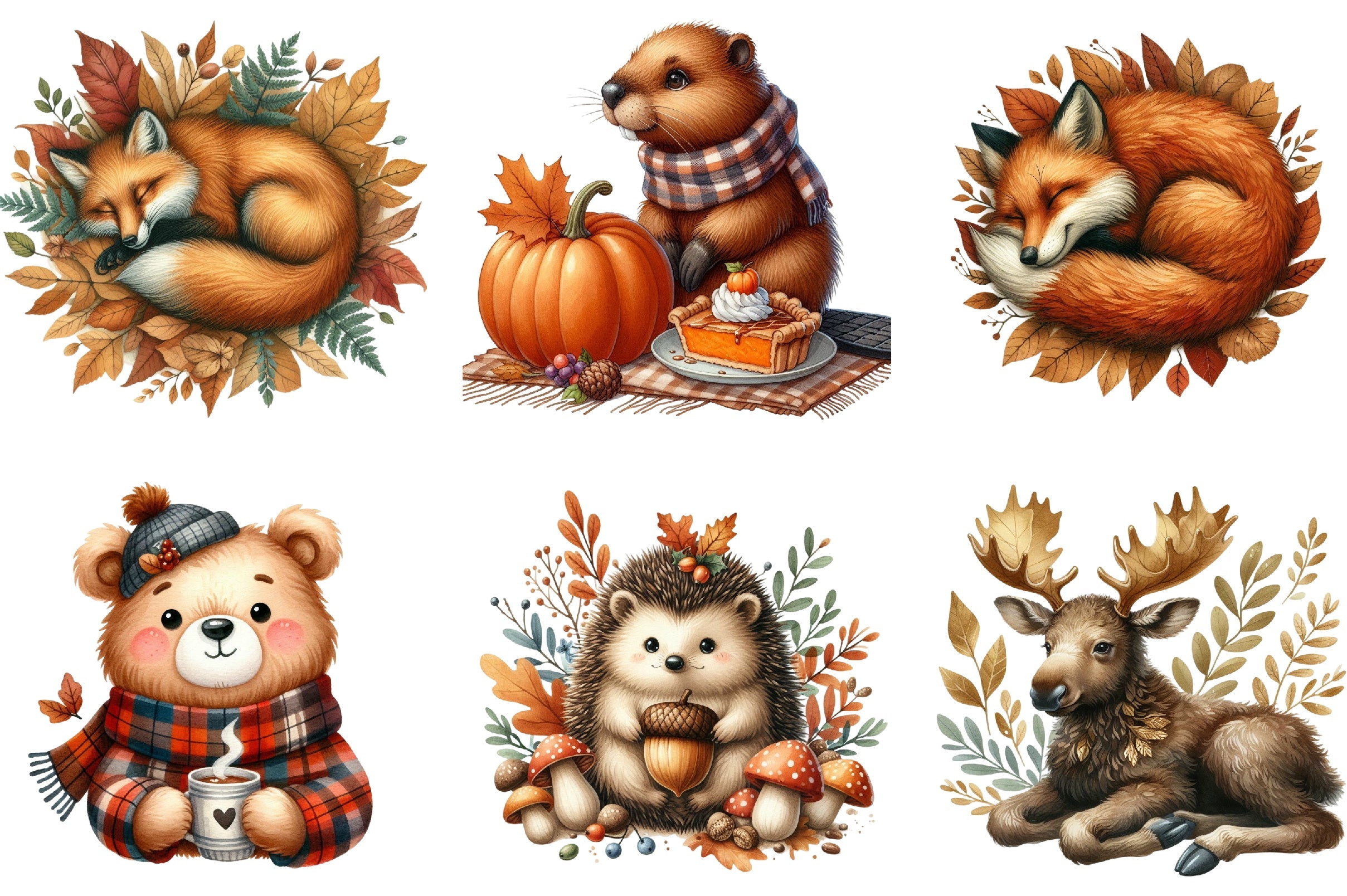 Transform your creative projects with our high-quality fall clipart, showcasing adorable animals and rich autumn colors, designed to inspire and enchant.