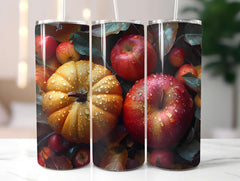 Add a touch of autumnal charm to your tumbler with this beautifully designed wrap. The seamless pattern features detailed apples in warm, fall colors, creating a cozy and inviting aesthetic. Ideal for a cheerful, seasonal vibe.