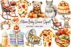 Celebrate the season with our Autumn Baby Shower Clipart Bundle, featuring charming fall-themed designs perfect for invitations, decorations, and crafts. Capture the essence of autumn with adorable illustrations of pumpkins, leaves, and cozy elements, ideal for creating memorable baby shower moments. Enhance your creative projects with this versatile collection, designed to add a touch of warmth and whimsy to any celebration. Perfect for DIY enthusiasts and professional designers alike, this bundle offers endless possibilities for crafting unique and personalized baby shower experiences.
