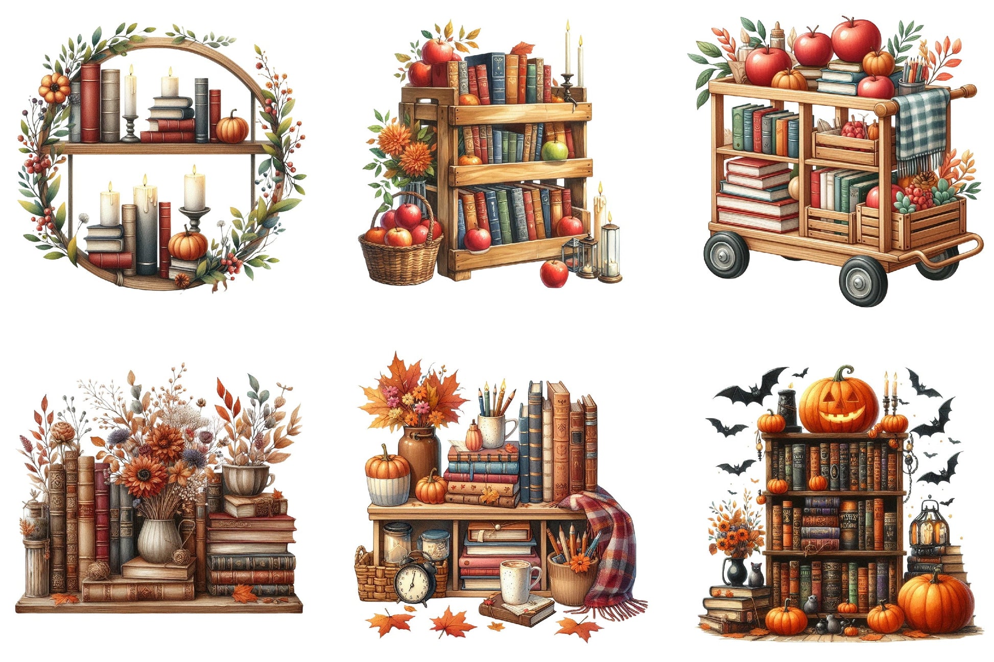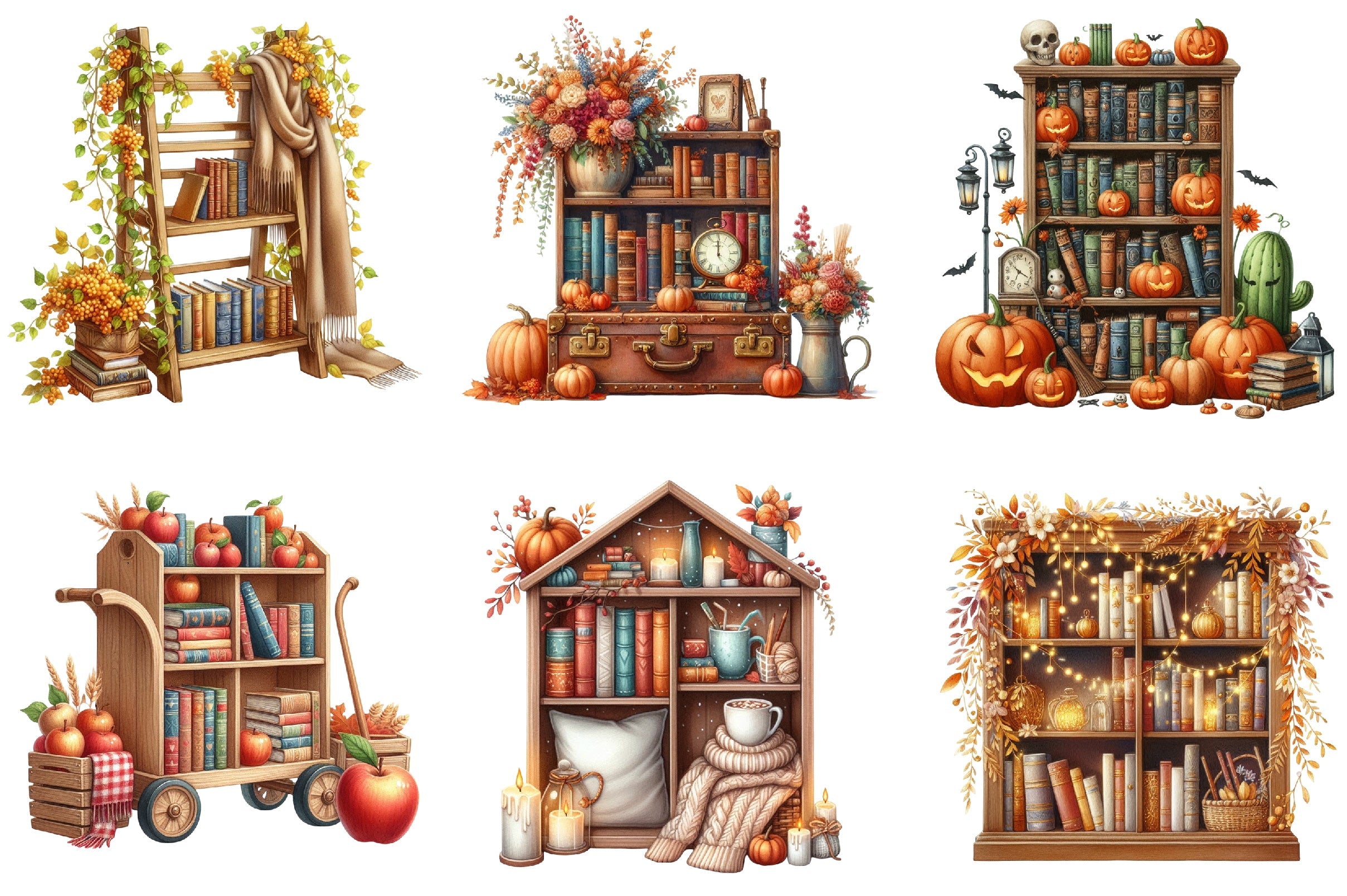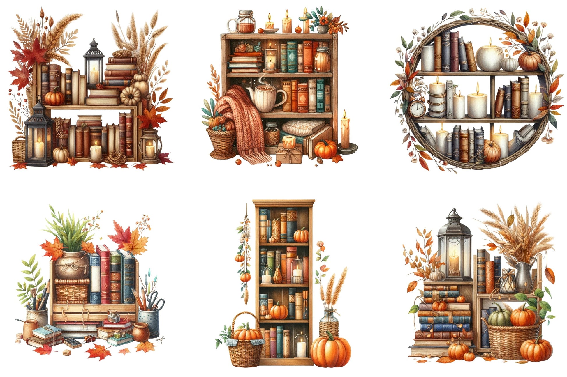 Unleash your creativity with the Autumn Bookshelf Clipart Bundle, featuring a stunning collection of fall-inspired graphics perfect for any project.