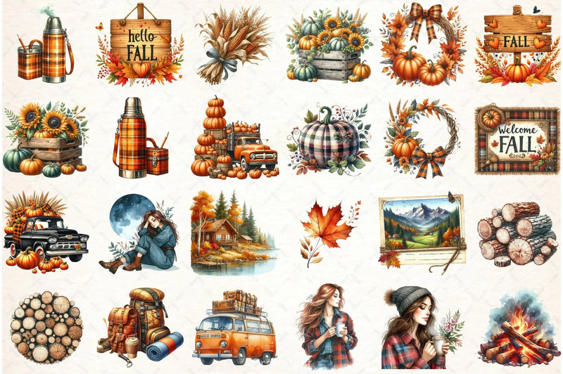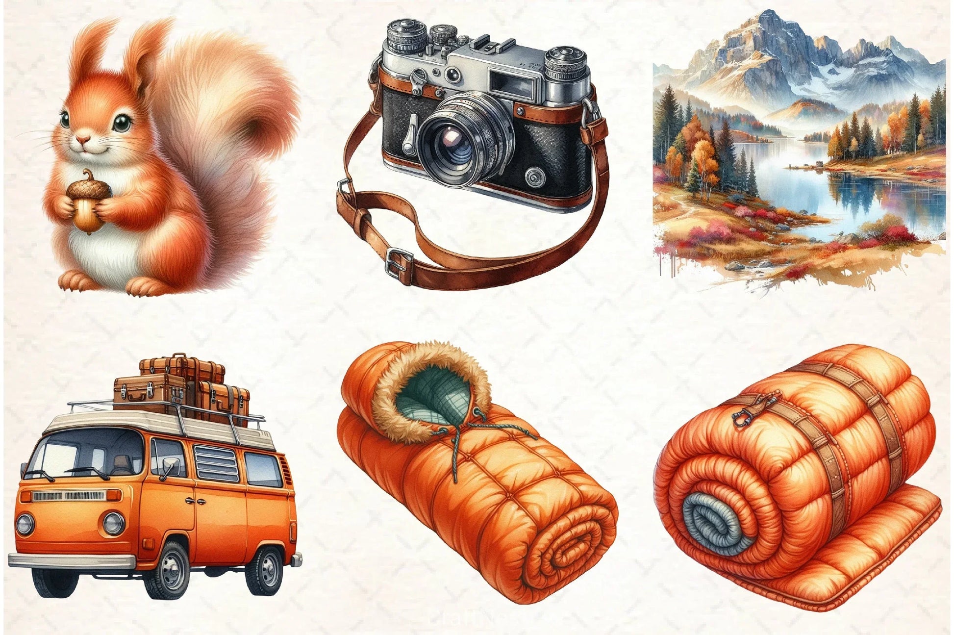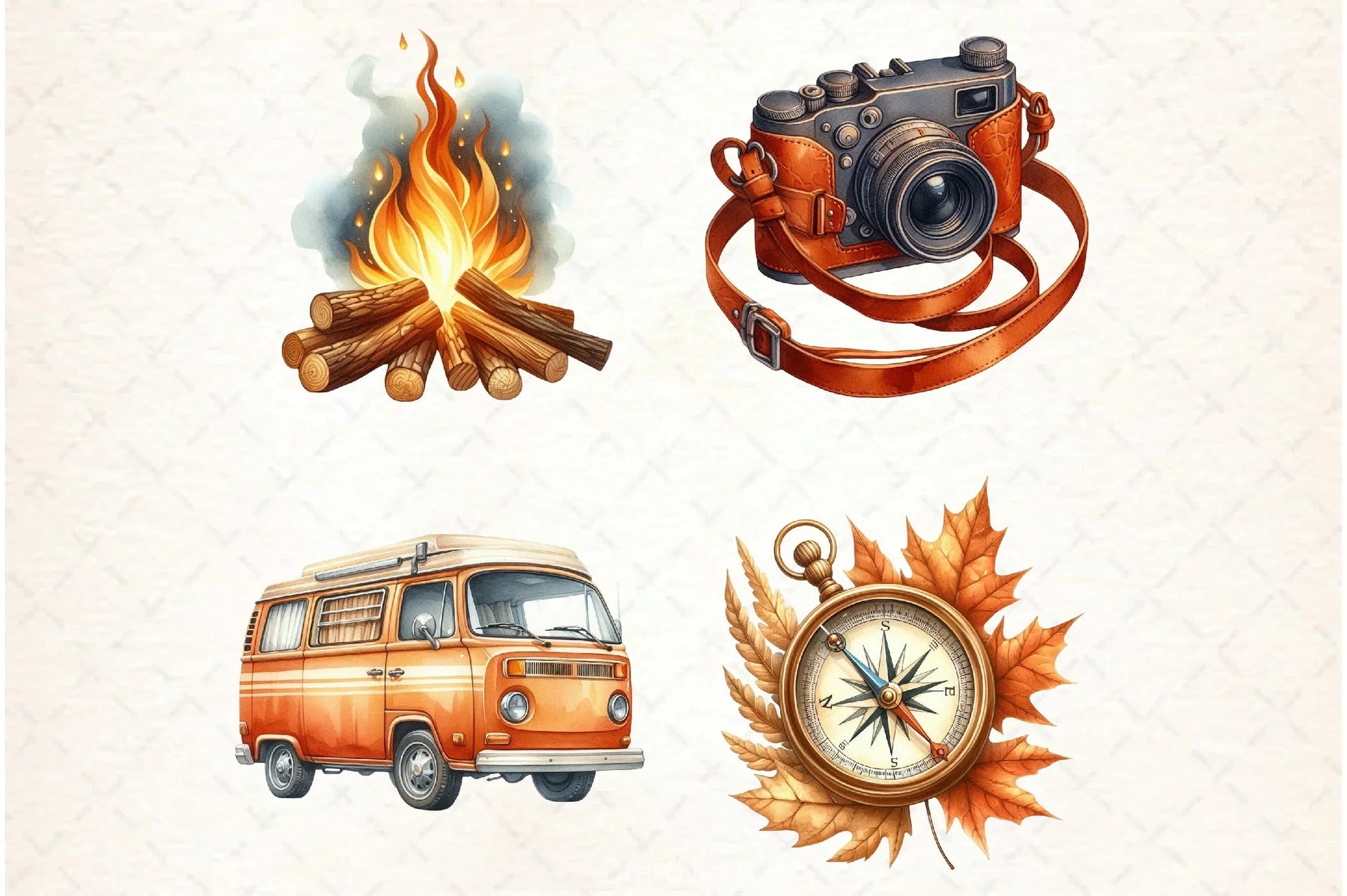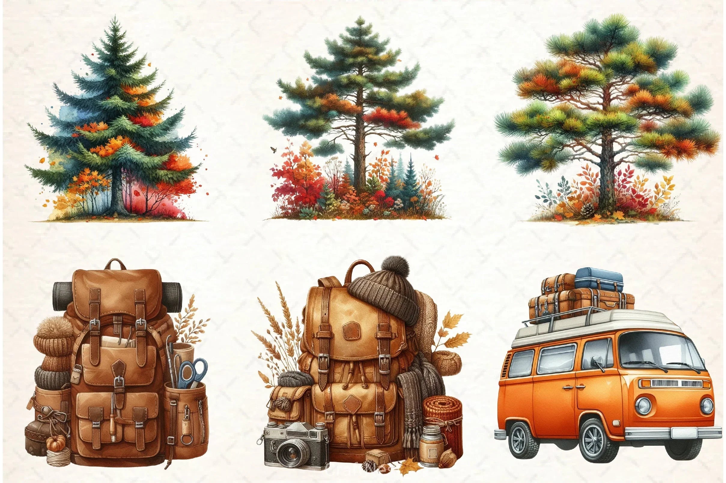 Embrace the season with our Autumn Camping Clipart Bundle, featuring charming fall-themed designs perfect for cozy camping crafts and seasonal projects.