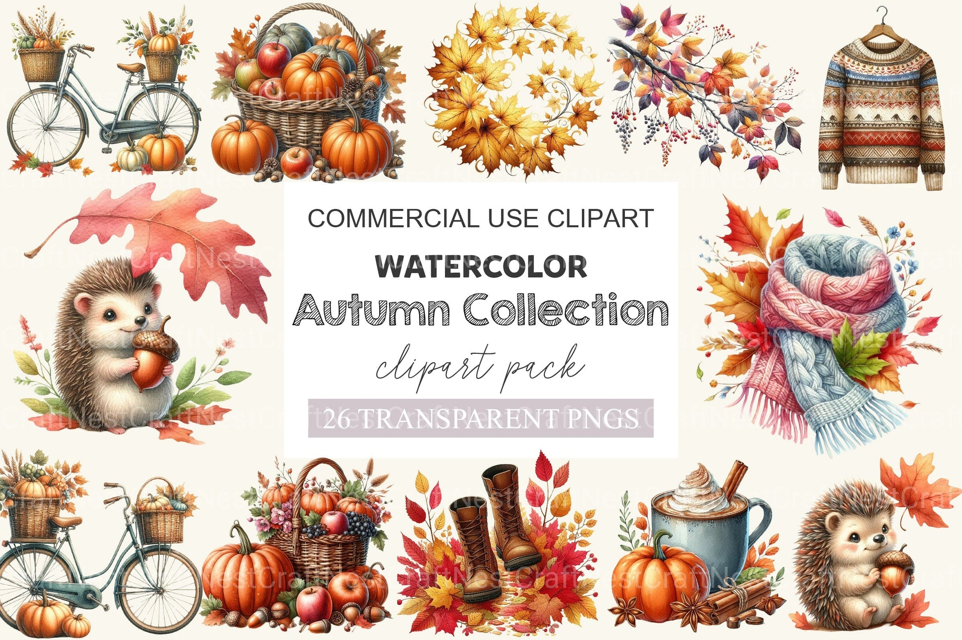 Gather with this Autumn Collection Clipart Bundle, featuring diverse fall designs, perfect for comprehensive autumn crafts.