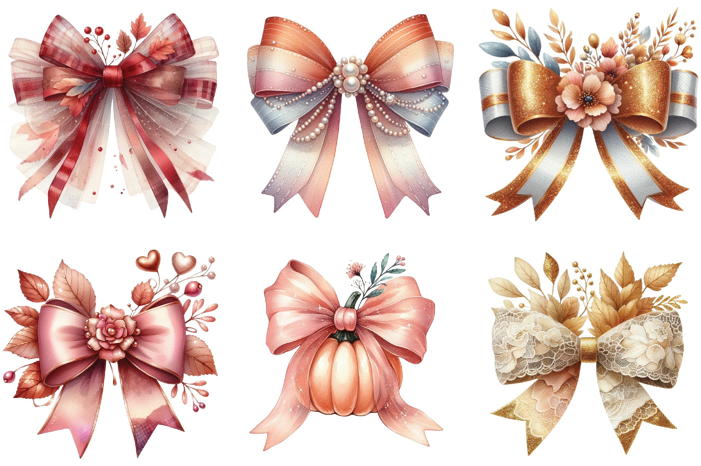 Enhance your creative projects with the Autumn Coquette Bows Clipart Bundle, featuring a charming collection of elegant bow designs perfect for seasonal crafts and digital artwork.