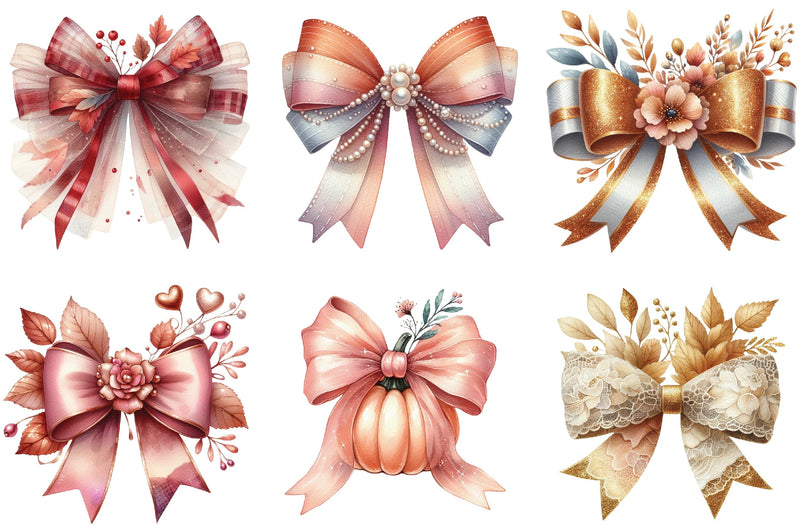 Transform your designs with the Autumn Coquette Bows Clipart Bundle, offering a versatile array of stylish bows to elevate your autumn-themed projects.