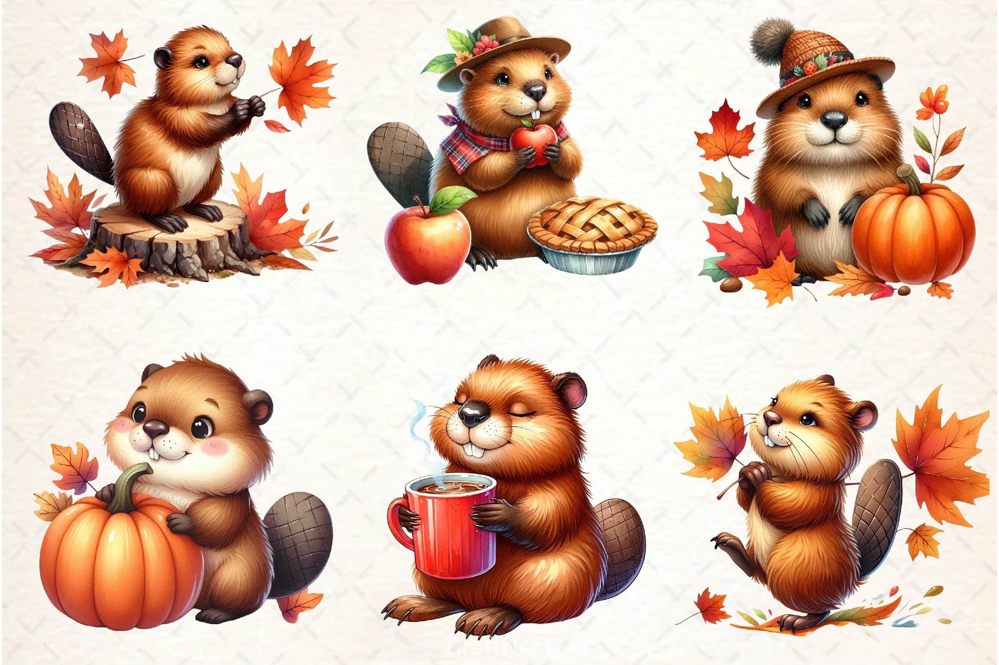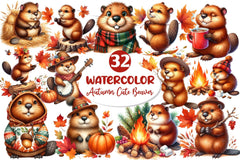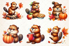 Autumn Cute Beaver Clipart Bundle 2