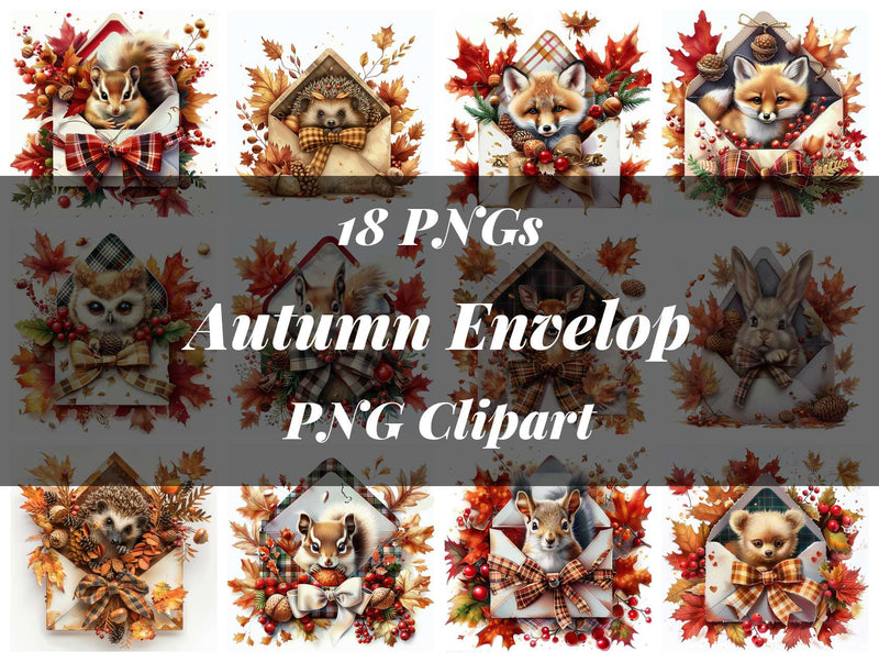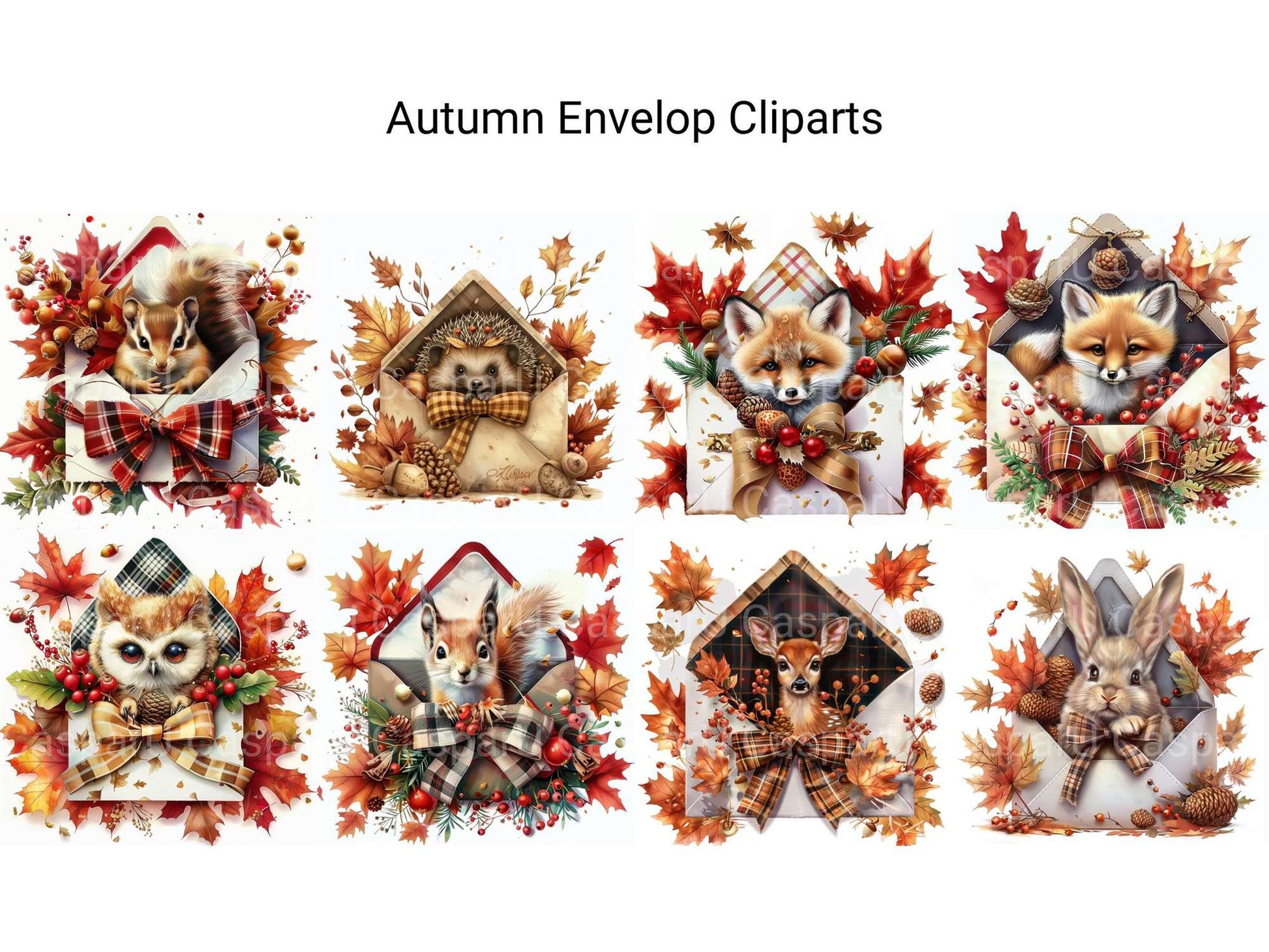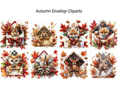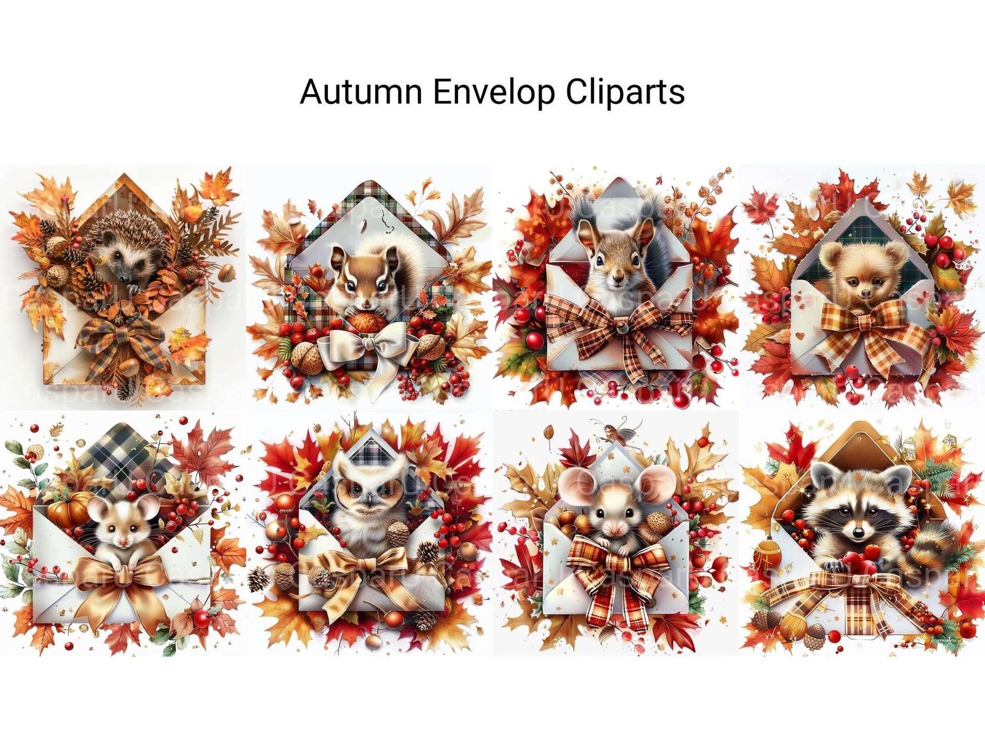 Wrap up the season with this Autumn Envelop Animals Clipart set, featuring cozy animal designs, perfect for fall-themed envelopes.