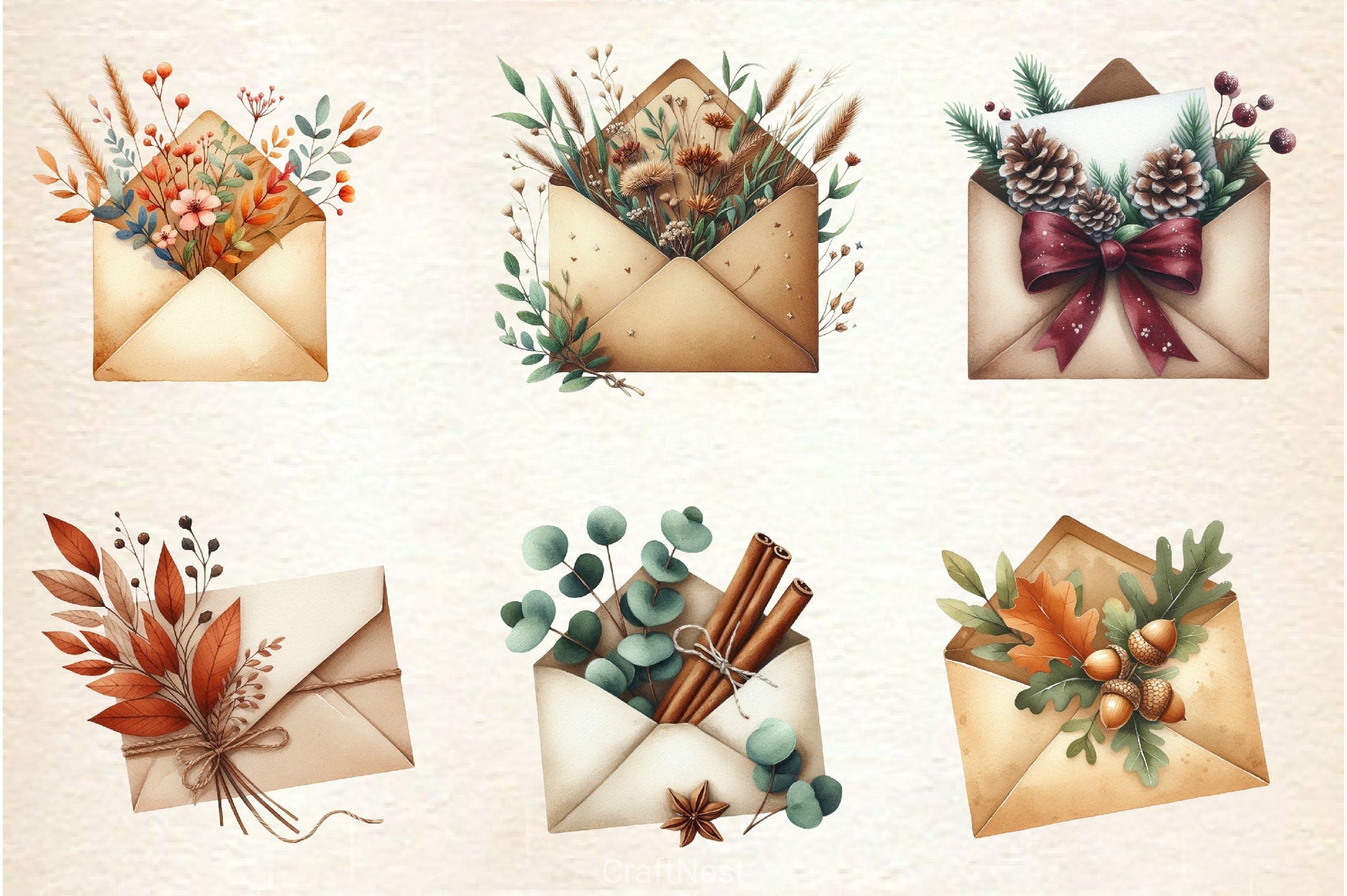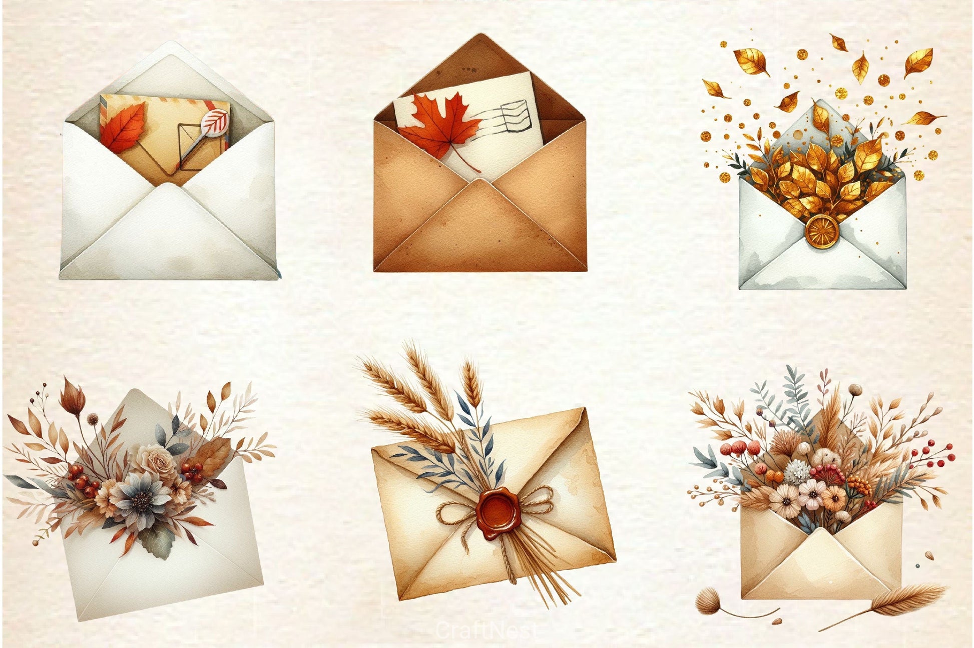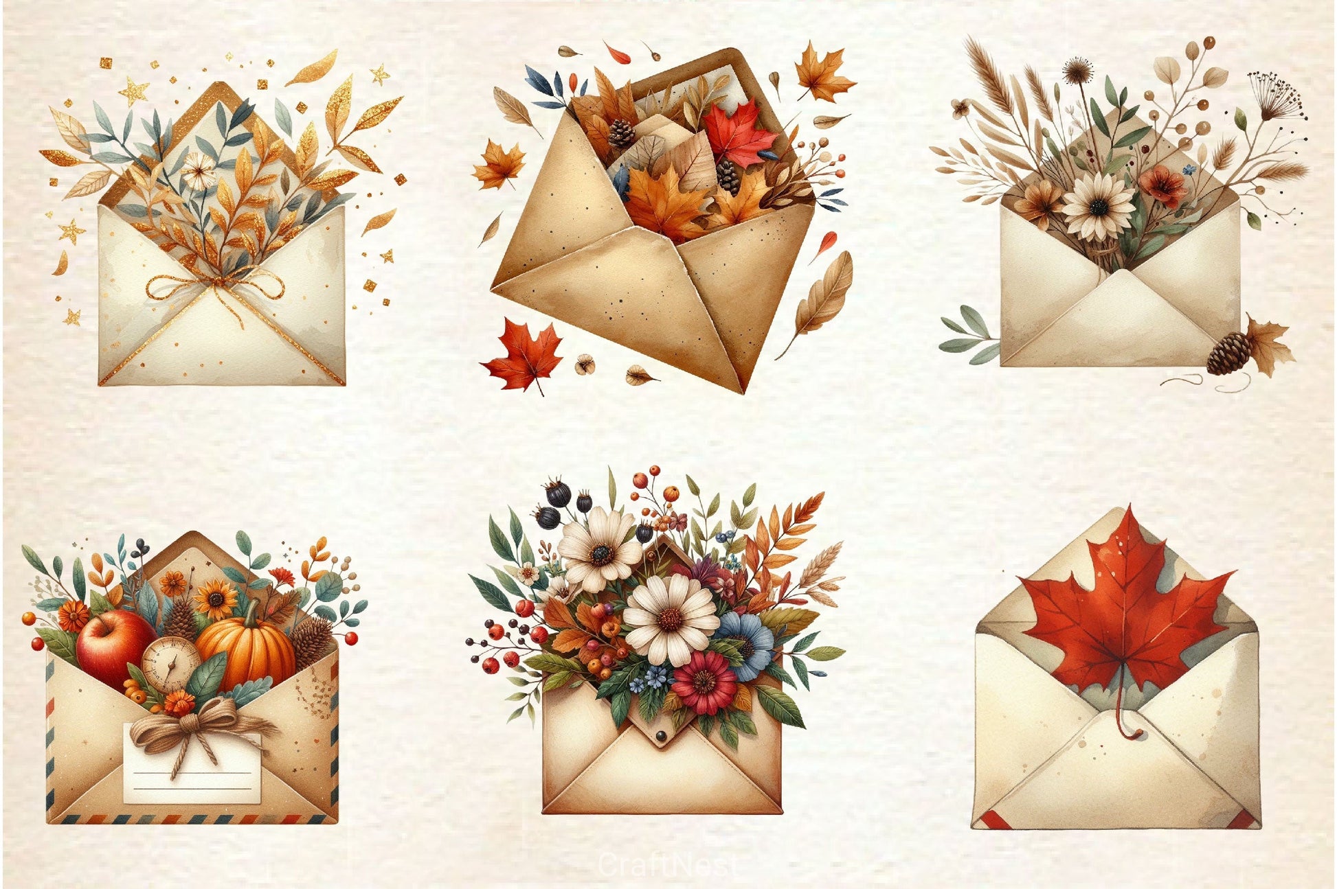 Mail with this Autumn Envelope Clipart Bundle, featuring fall correspondence designs, perfect for seasonal communication crafts.