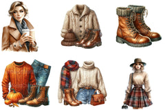 Style the season with this Autumn Fashion Clipart, featuring fall fashion designs, ideal for seasonal crafts.