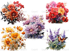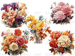 Adorn your designs with the delicate beauty of autumn blooms with our Autumn Floral Beauty clip art. These elegant digital illustrations feature an array of fall flowers, from golden sunflowers to crimson dahlias, perfect for adding a touch of floral elegance and seasonal splendor to your designs, whether for autumn-themed invitations, floral arrangements, or botanical creations, capturing the graceful allure of autumn floral beauty in enchanting detail.