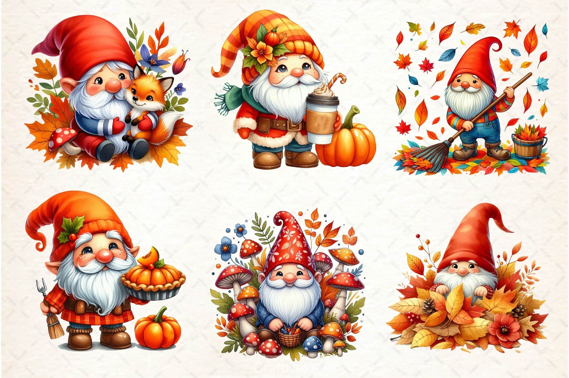 Fall with this Autumn Gnomes Clipart Bundle, featuring seasonal garden creature designs, perfect for enchanted autumn crafts.