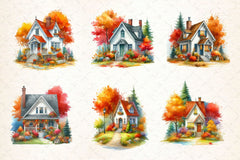 Dwell with this Autumn House Clipart Bundle, featuring fall home designs, perfect for seasonal living crafts.