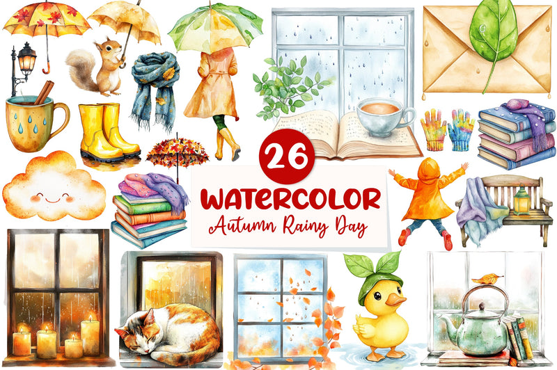 Rain with this Autumn Rainy Day Clipart Bundle, featuring rainy autumn days, perfect for weather fall crafts.