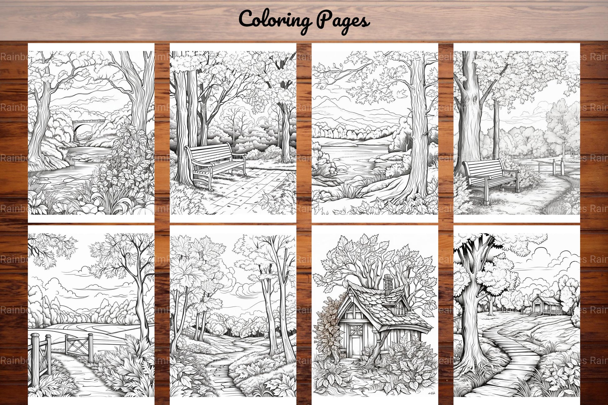 Fall with this Autumn Scenery Adult Coloring Pages, featuring beautiful autumn landscapes, ideal for seasonal nature coloring.