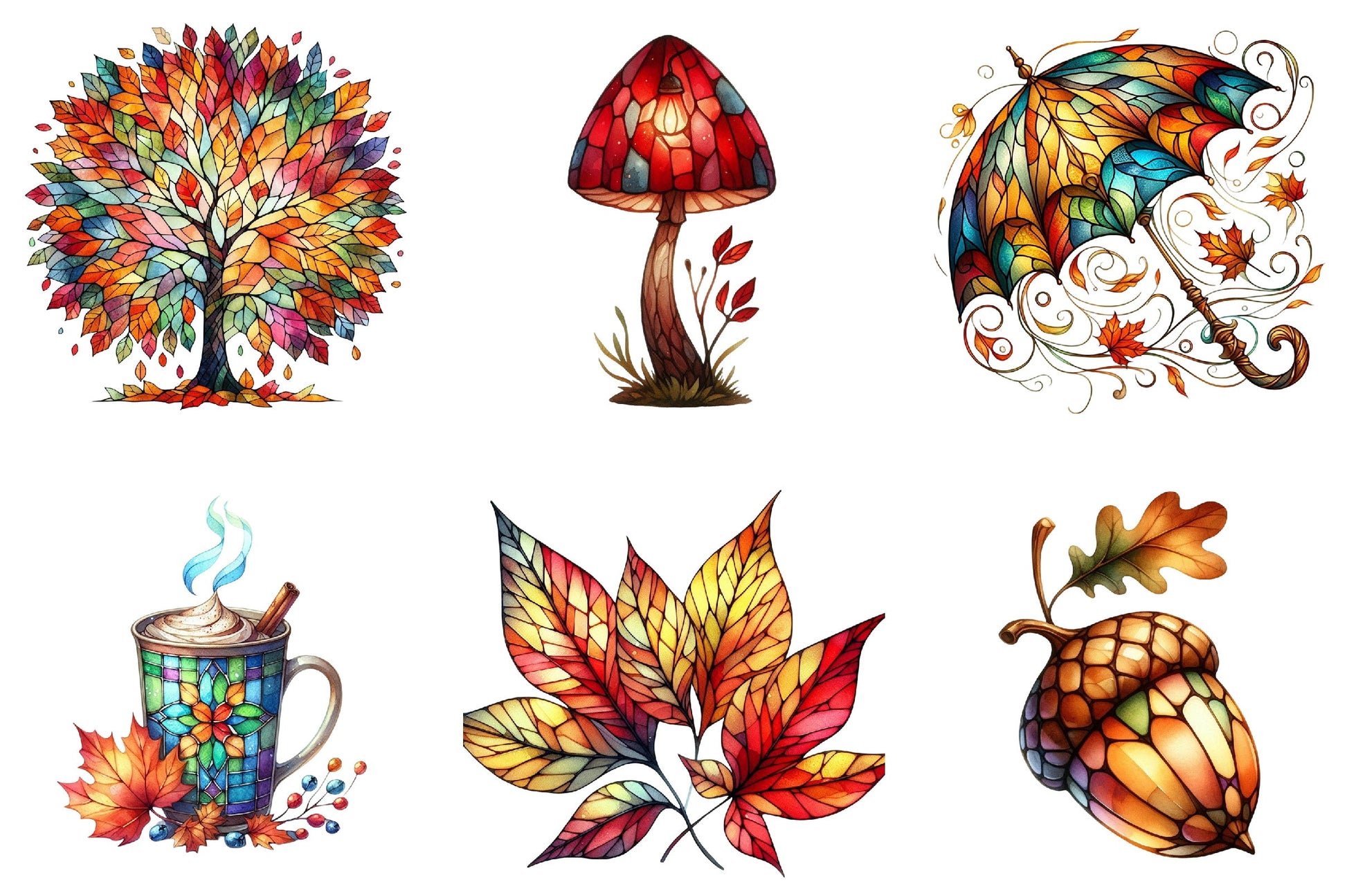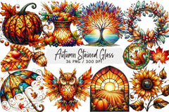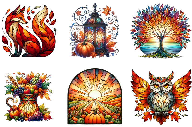 Transform your projects with the Autumn Stained Glass Clipart Bundle, featuring vibrant fall designs perfect for seasonal crafts and decorations. Capture the essence of autumn with these stunning stained glass illustrations, ideal for digital scrapbooking, invitations, and more. Elevate your creative work with this unique collection, designed to bring warmth and color to any project. Perfect for artists, crafters, and designers looking to add a touch of autumn magic to their creations.