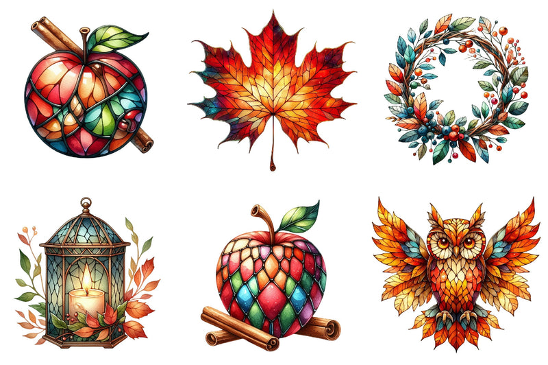 Autumn Stained Glass Clipart Bundle