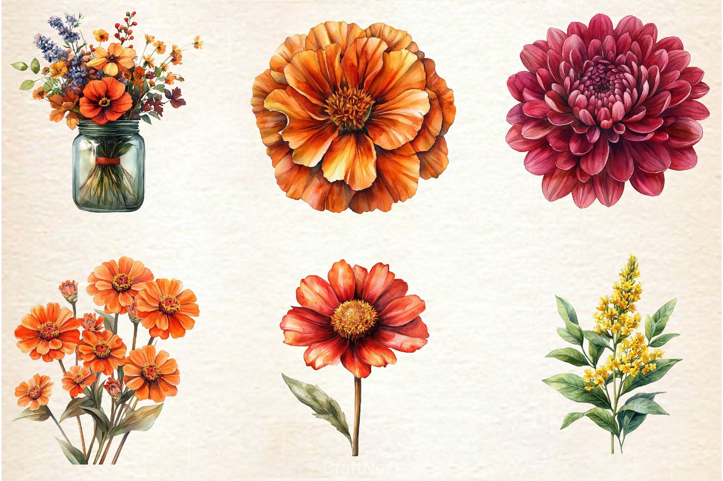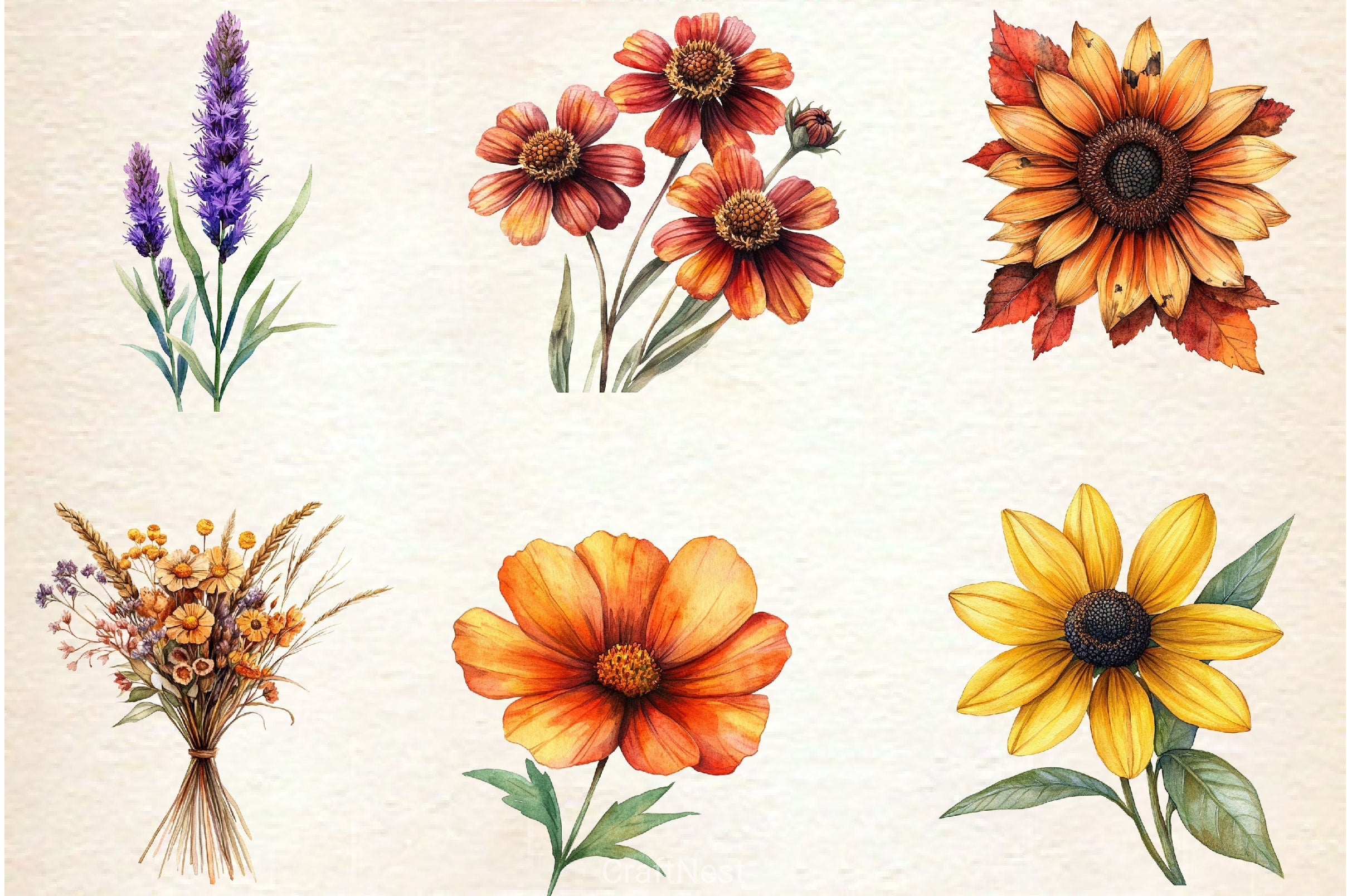 Wild with this Autumn Wildflowers Clipart Bundle, featuring natural fall flower designs, perfect for seasonal wildflower crafts.