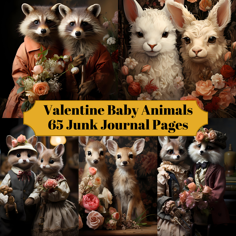 Delight in the innocence and joy of love with our Baby Animals-themed Valentine's Day digital junk journal. Featuring adorable creatures, playful scenes, and heartwarming motifs, this journal provides a charming space for capturing memories, doodling, and expressing your creativity amidst the endearing sweetness and tender affection of baby animal-inspired Valentine's Day celebrations, perfect for sharing love and smiles with young and old alike.