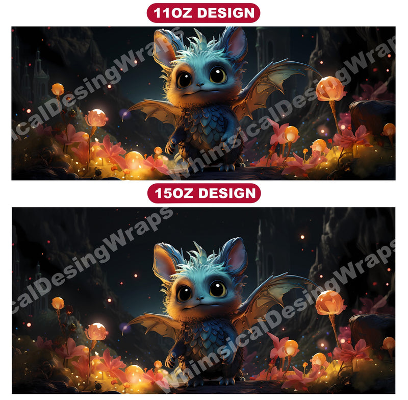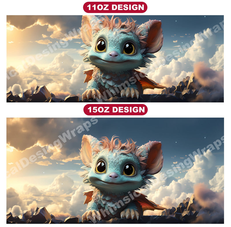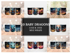Fly into a world of fantasy with our baby dragon digital mug wraps. These enchanting designs showcase whimsical baby dragons in various poses, making them a perfect addition to any fantasy lover's mug collection.