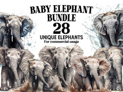 Marvel at the adorable majesty of our Baby Elephant clip art. These delightful digital illustrations capture the playful antics and tender moments of baby elephants, conveying their innate charm and endearing qualities, perfect for adding a touch of wild beauty to your designs.