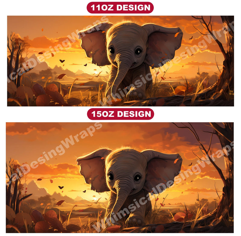 Embrace the gentle majesty of nature with our baby elephant digital mug wraps. These heartwarming designs capture the charm of baby elephants in their playful antics and adorable demeanor, making them a perfect choice for anyone who admires these majestic creatures and their bond with their mothers.
