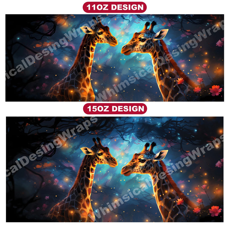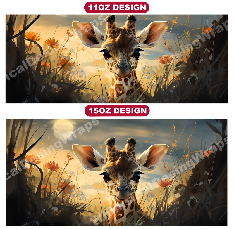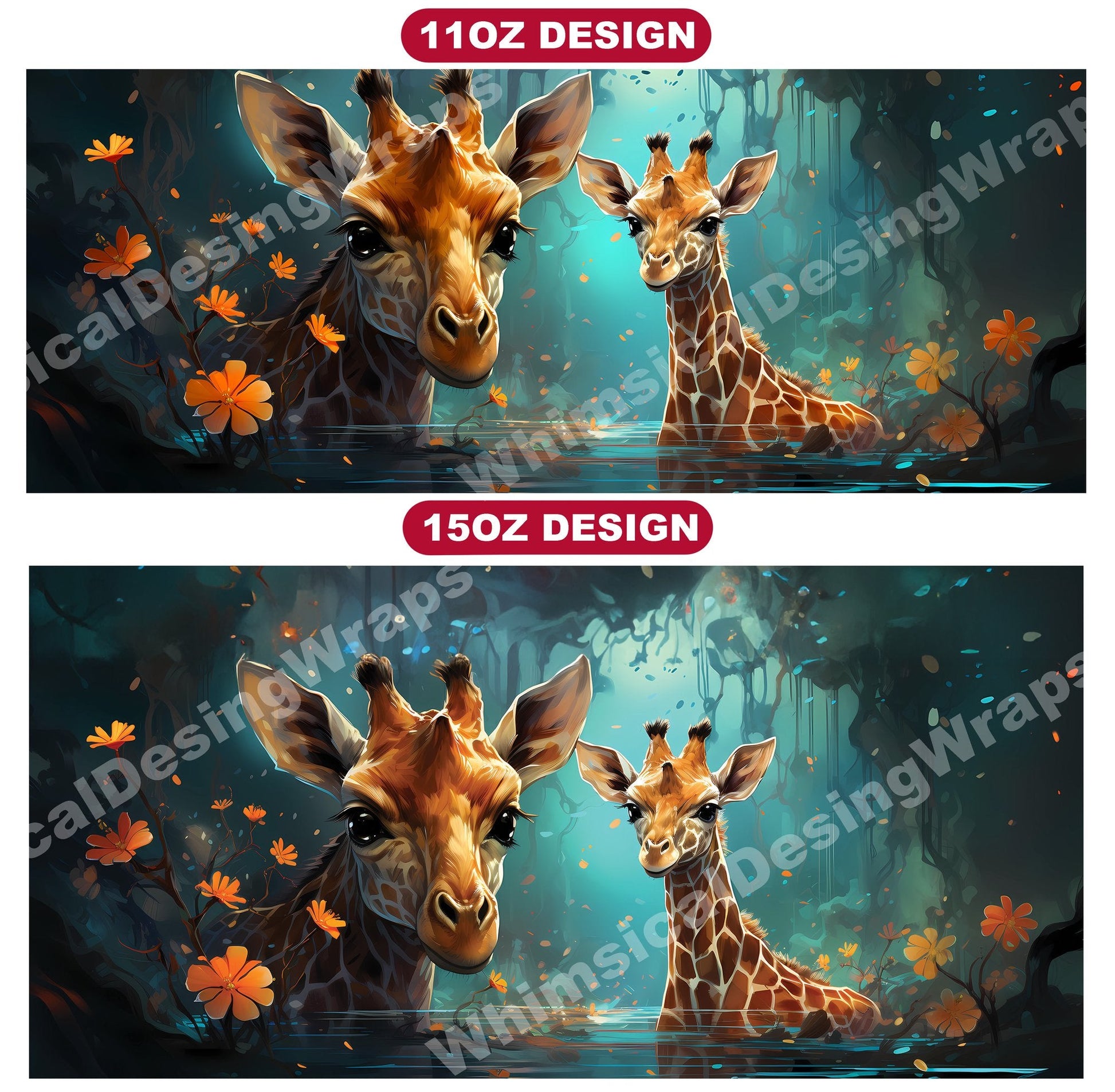 Reach new heights of cuteness with our baby giraffe digital mug wraps. These endearing designs feature gentle baby giraffes with their long necks and soulful eyes, exuding a sense of innocence and wonder that will brighten up your morning coffee or tea time.