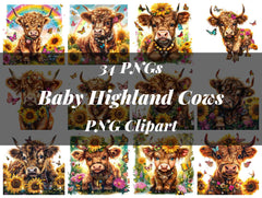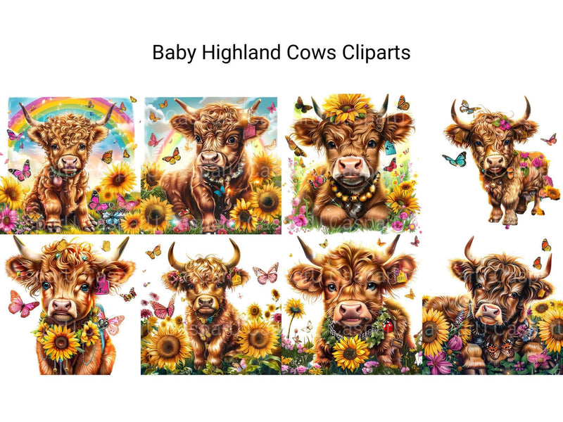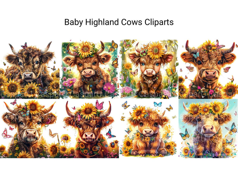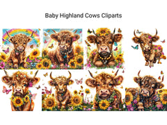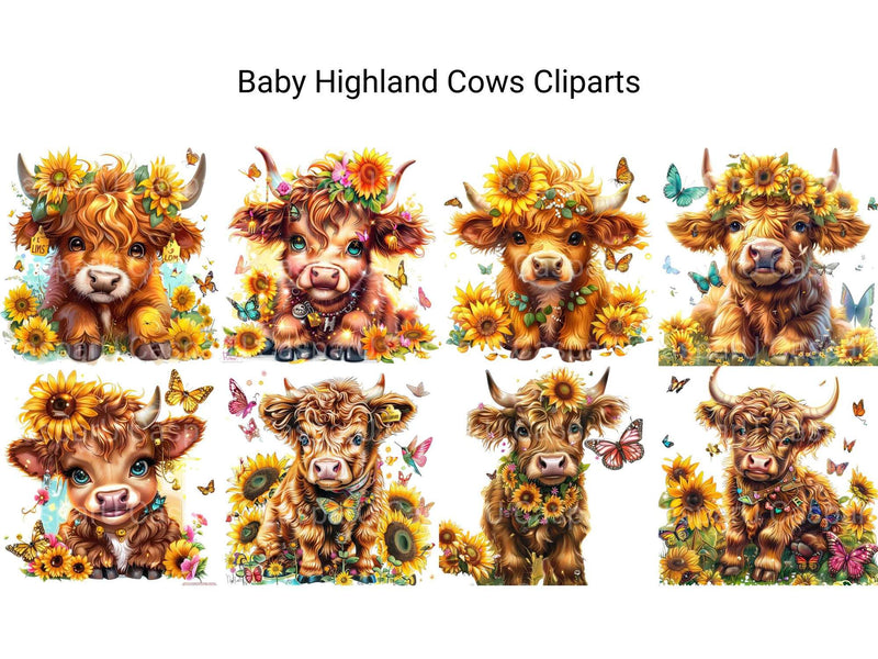 Bring rustic cuteness with this Baby Highland Cows Clipart set, showcasing fluffy baby cows, ideal for farm-inspired artwork.