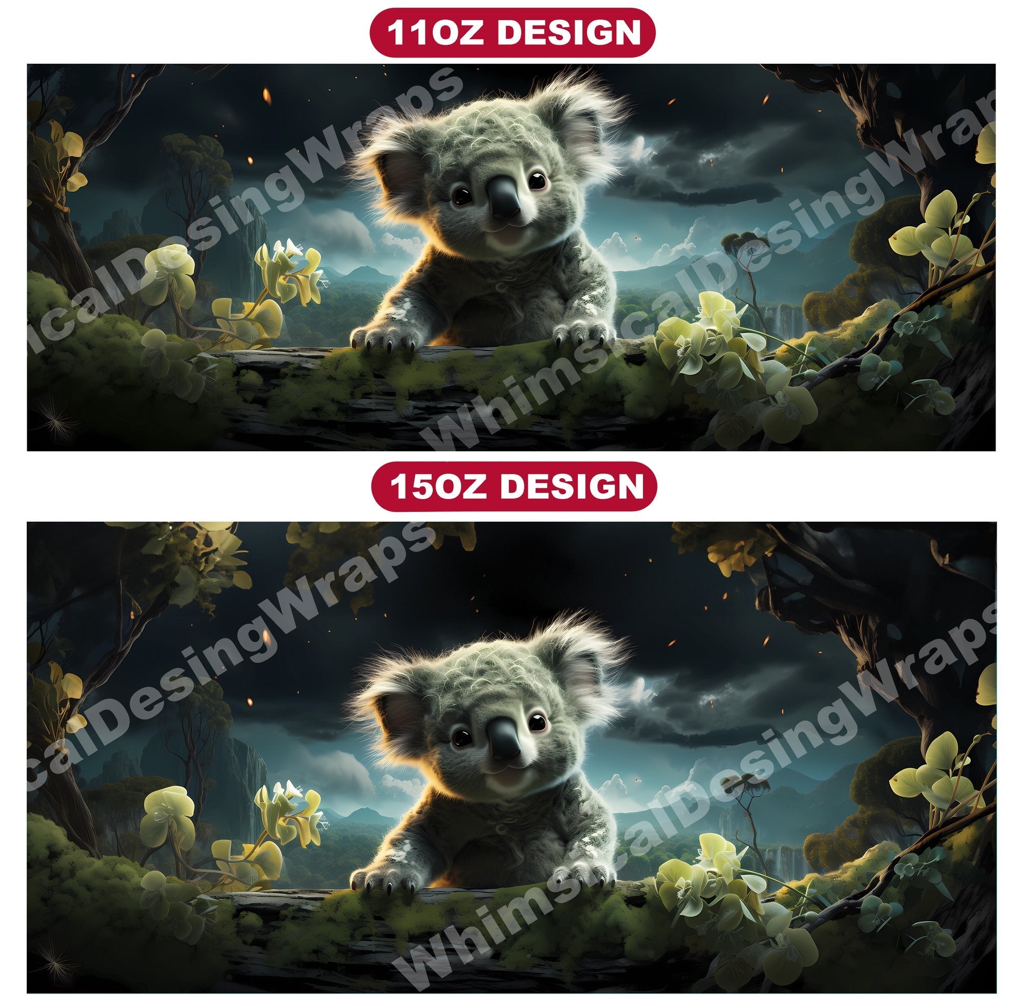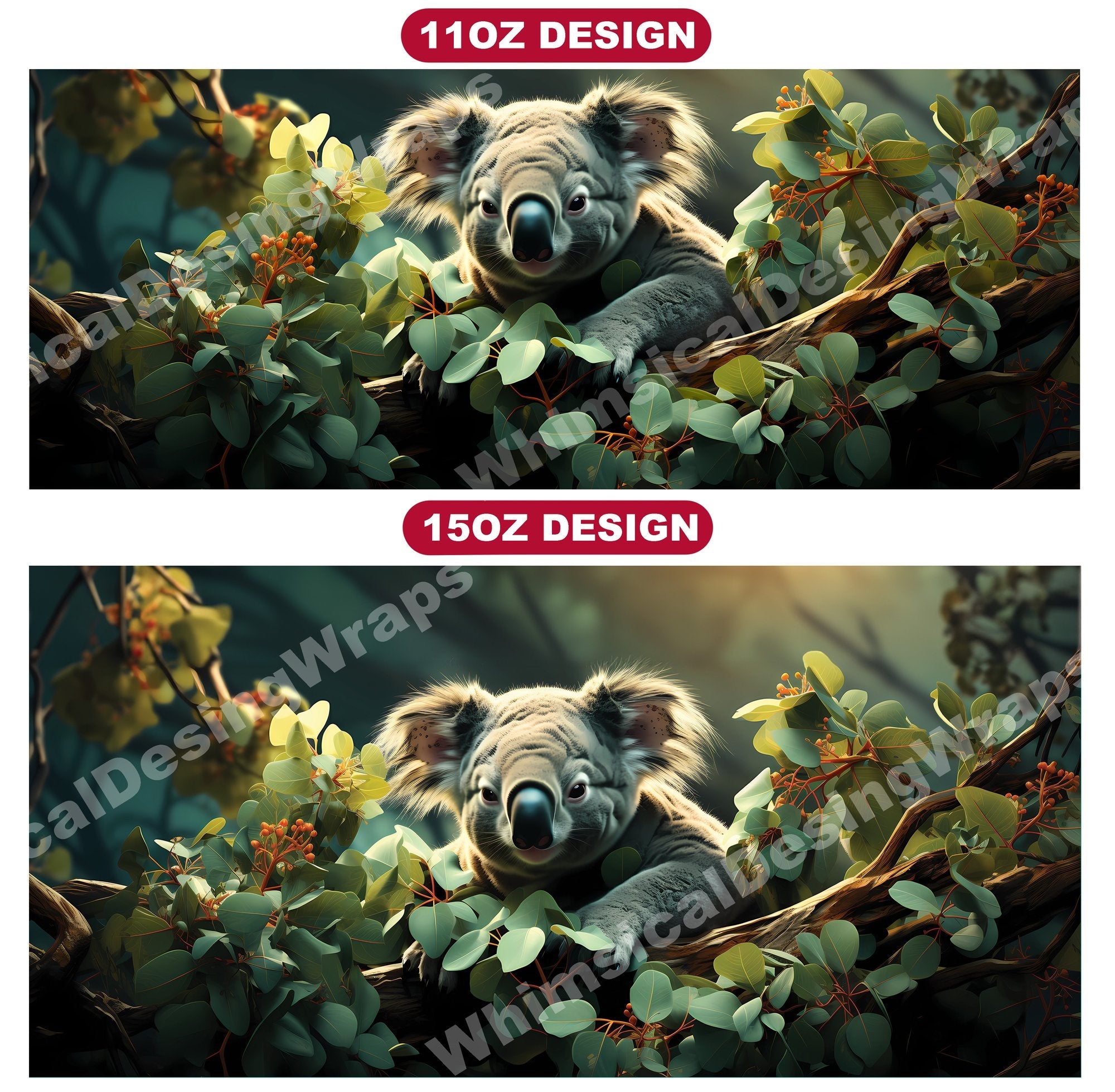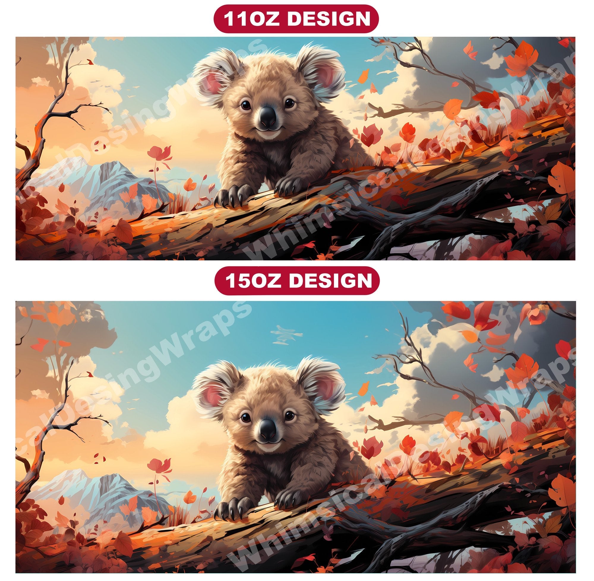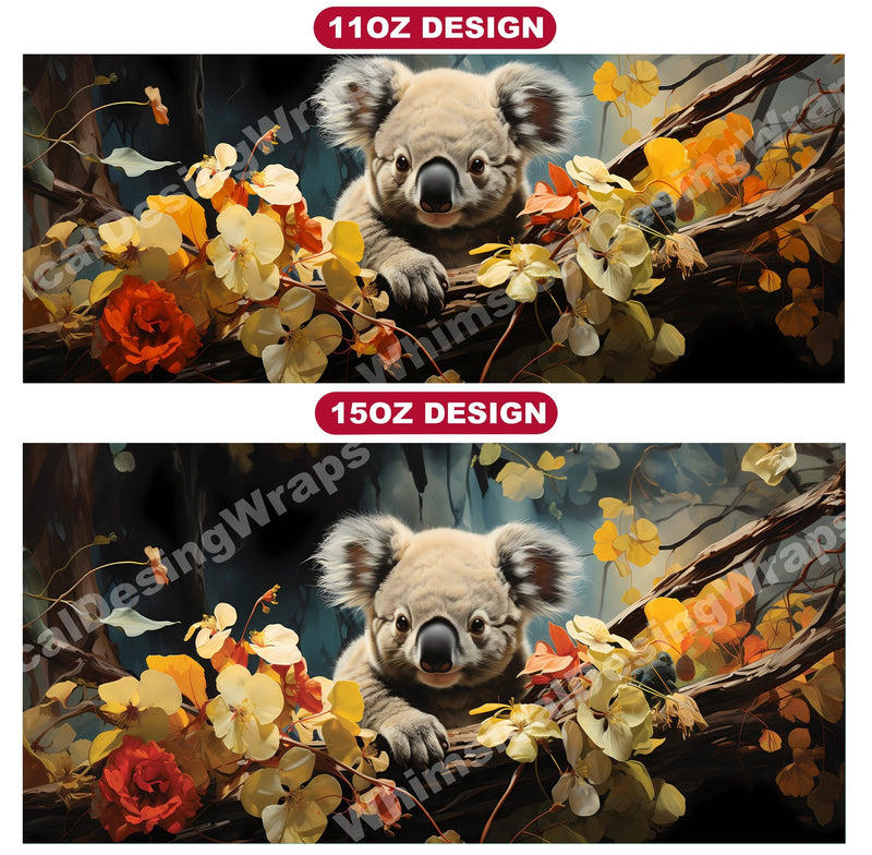 Experience the cuddly charm of Australia's iconic marsupials with our baby koala digital mug wraps. These adorable designs feature fluffy baby koalas clinging to eucalyptus branches, evoking a sense of innocence and tranquility that will bring warmth to your morning coffee or tea time.