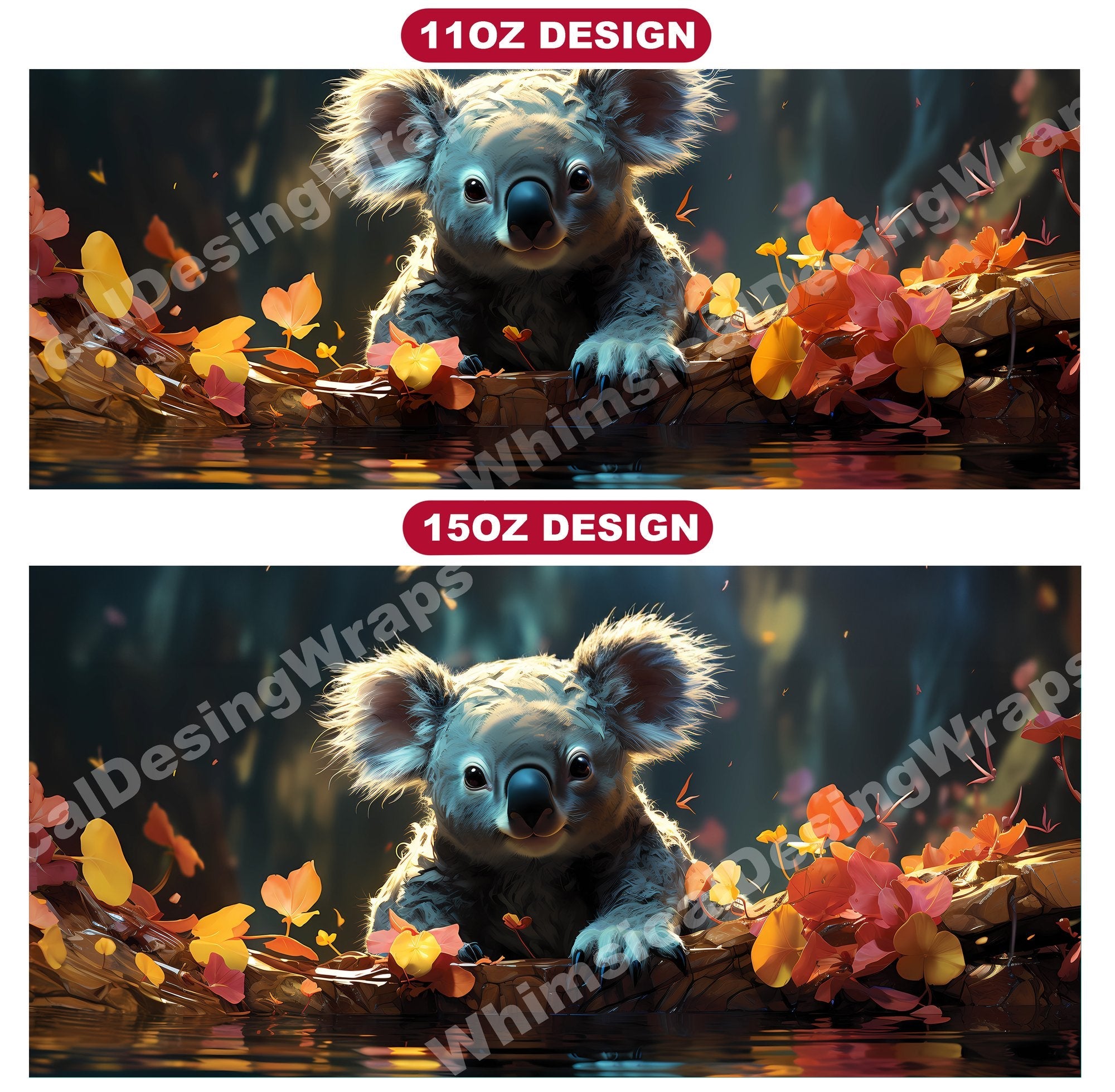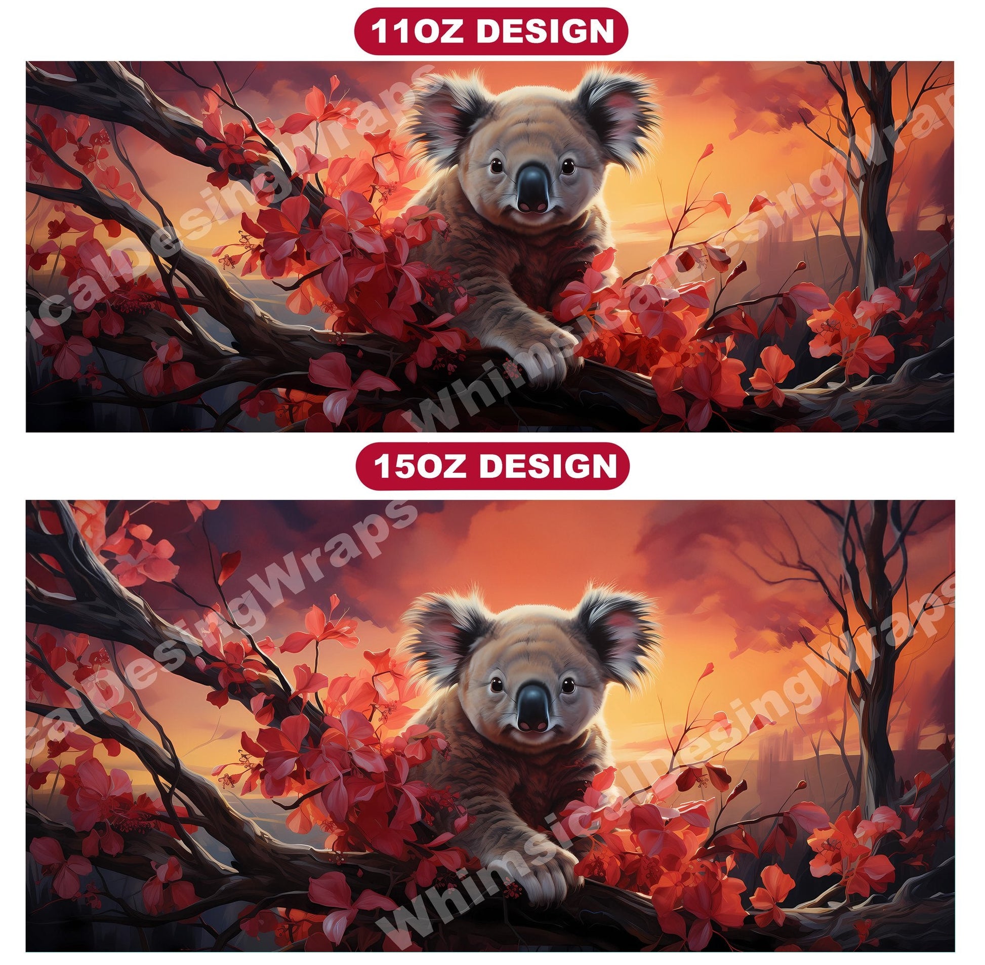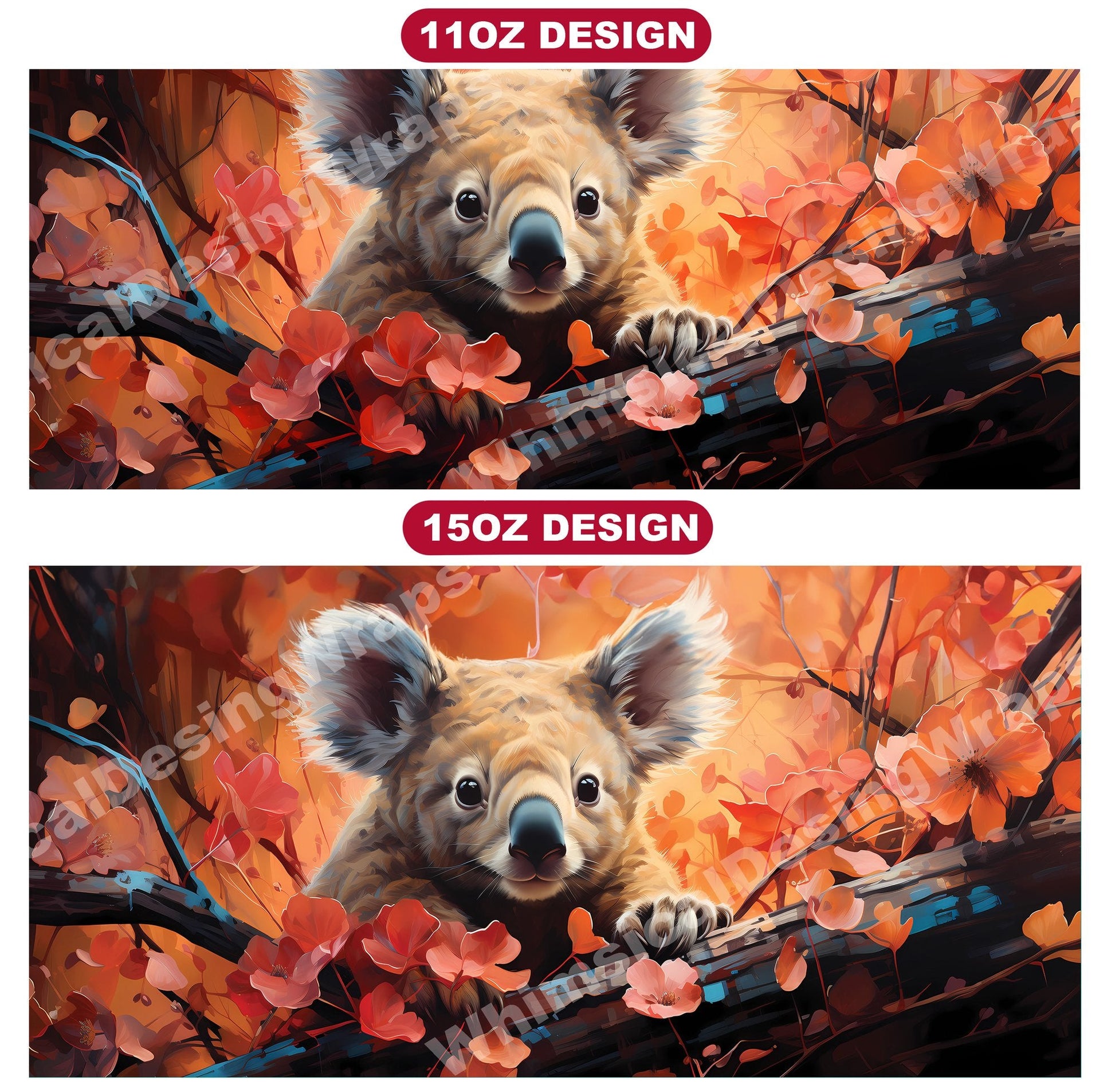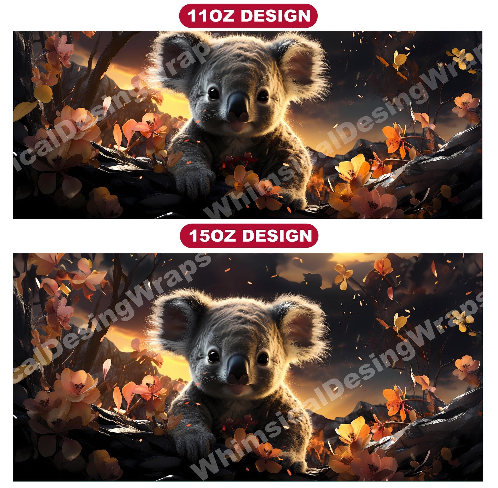 Experience the cuddly charm of Australia's iconic marsupials with our baby koala digital mug wraps. These adorable designs feature fluffy baby koalas clinging to eucalyptus branches, evoking a sense of innocence and tranquility that will bring warmth to your morning coffee or tea time.