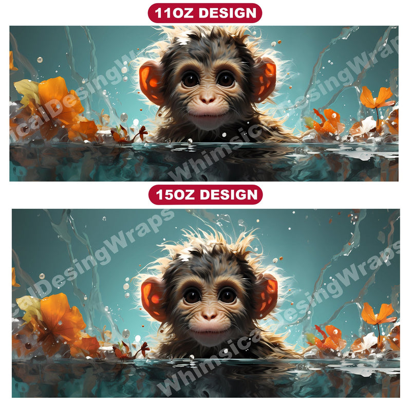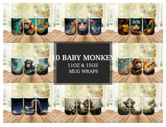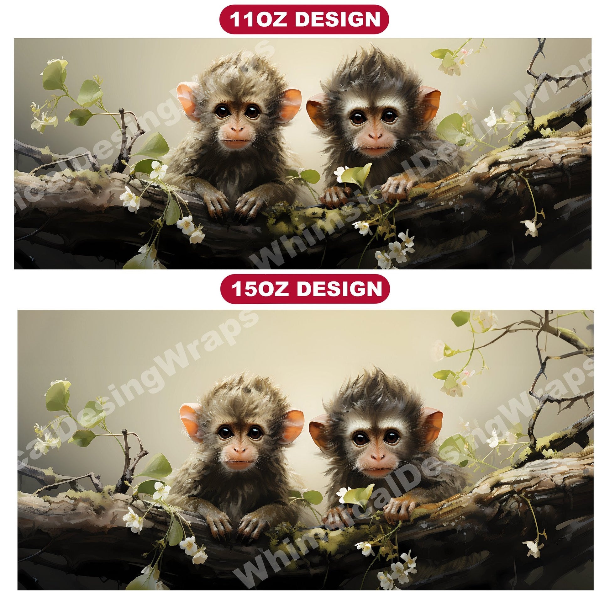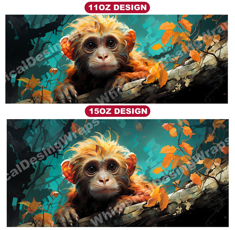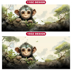 Swing into fun with our baby monkey digital mug wraps. These playful designs feature adorable baby monkeys hanging from branches and frolicking in the jungle, exuding a sense of joy and mischief that will bring a smile to your face with every sip of your favorite beverage.
