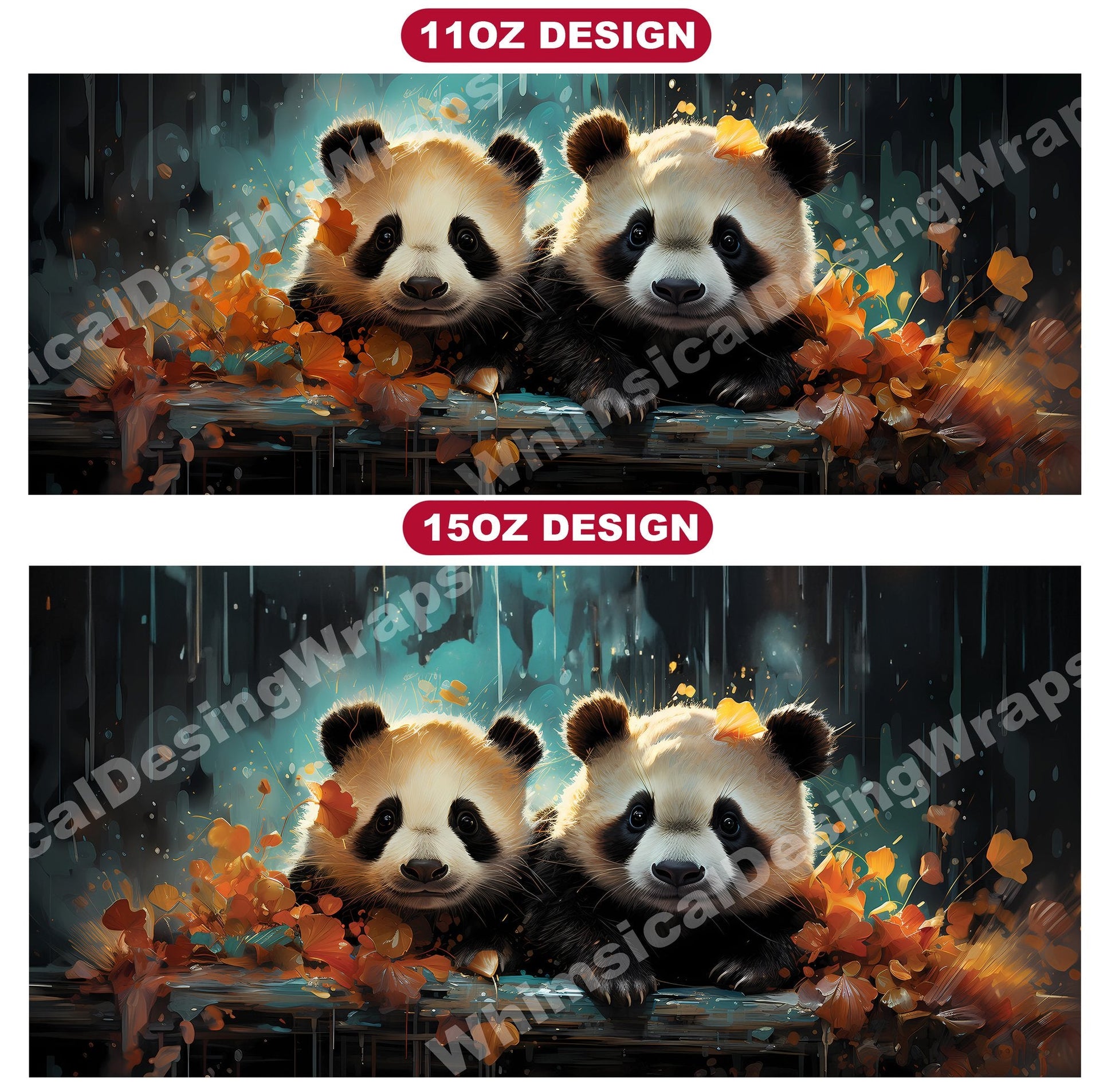 Awaken your sense of wonder with our baby panda digital mug wraps. These lovable designs feature cuddly baby pandas amidst bamboo forests, showcasing the innocence and endearing nature of these iconic creatures, bringing a touch of joy and tranquility to your daily coffee ritual.