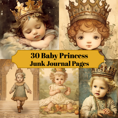 Delight in the innocence and charm of our Baby Princess digital junk journal. Featuring adorable illustrations of royal infants adorned in regal attire, each page captures the whimsy and wonder of childhood royalty, perfect for commemorating the arrival of a little princess or adding a touch of royal elegance to your scrapbooking projects.