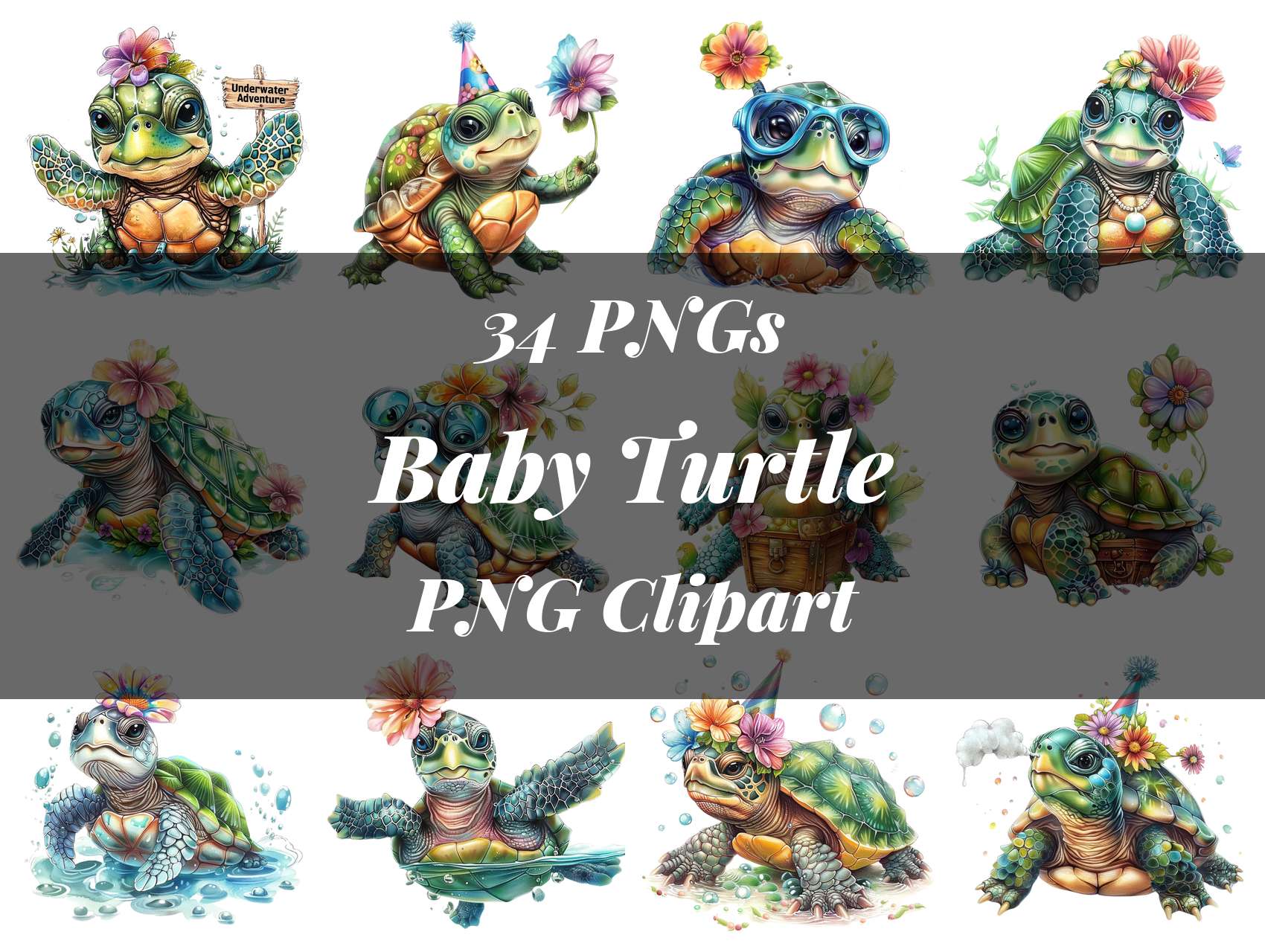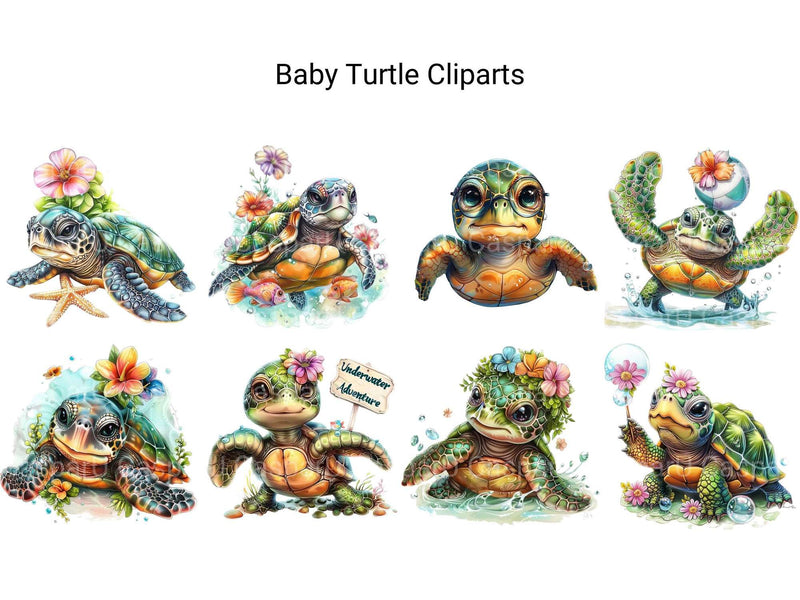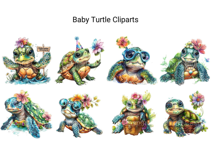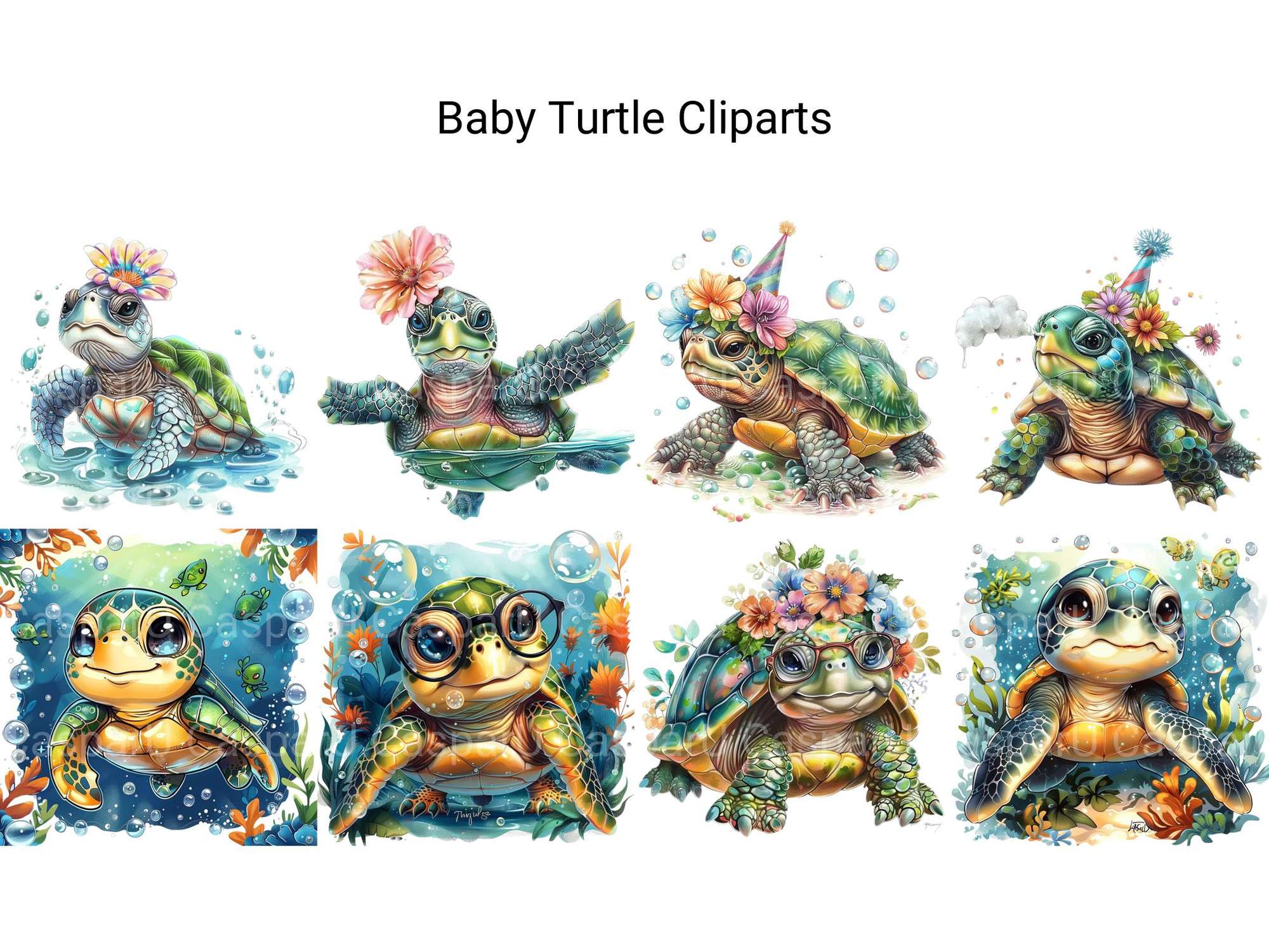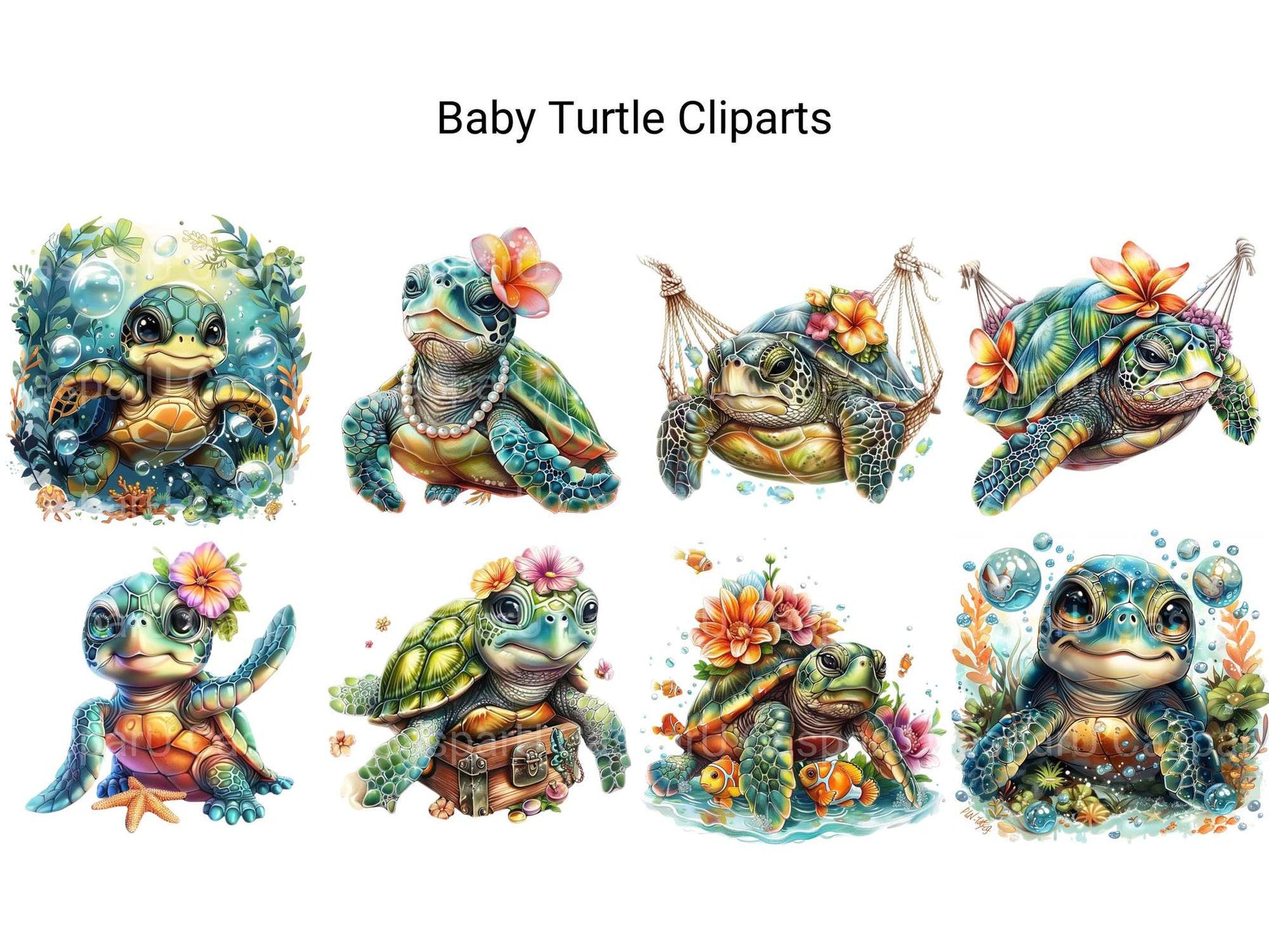 Dive into sweetness with this Baby Turtle Clipart bundle, featuring adorable turtle designs, perfect for ocean-themed crafts.