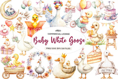 Celebrate with this Baby White Goose Birthday Clipart Bundle, featuring party bird designs, ideal for birthday baby animal crafts.