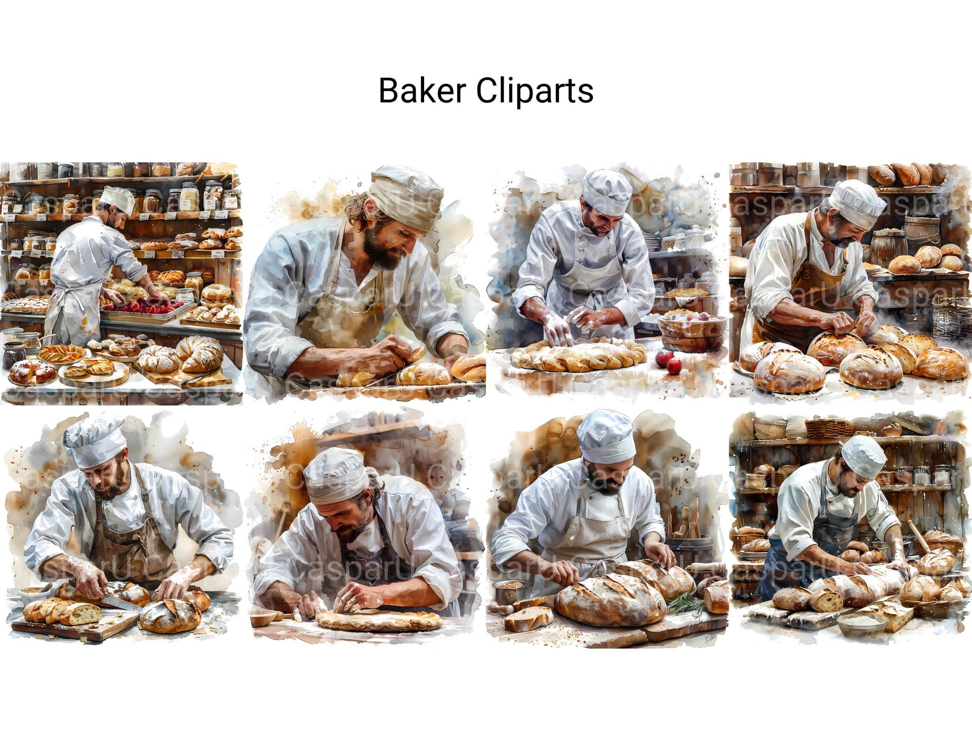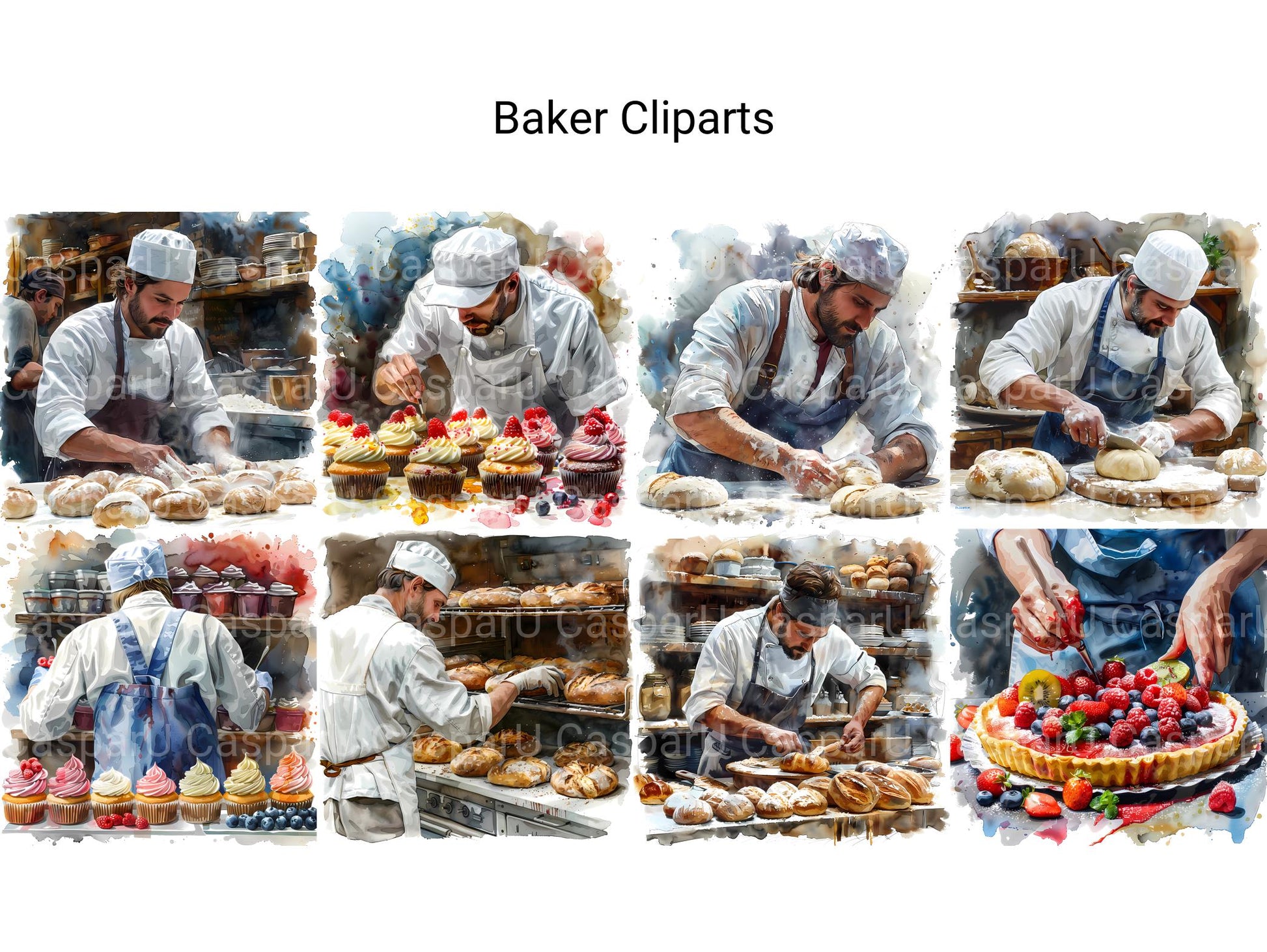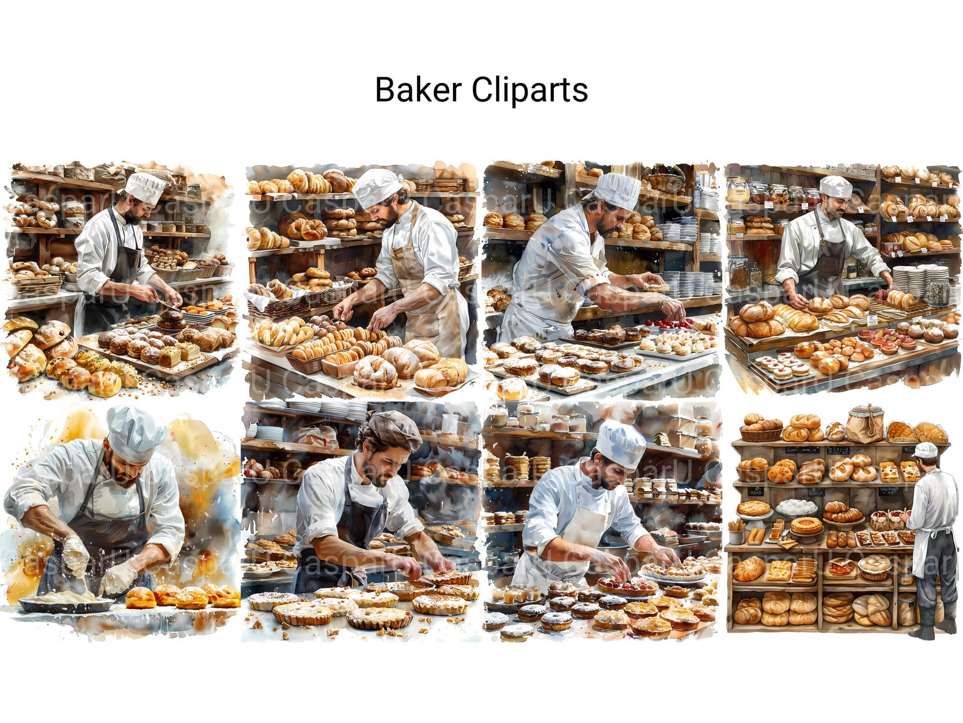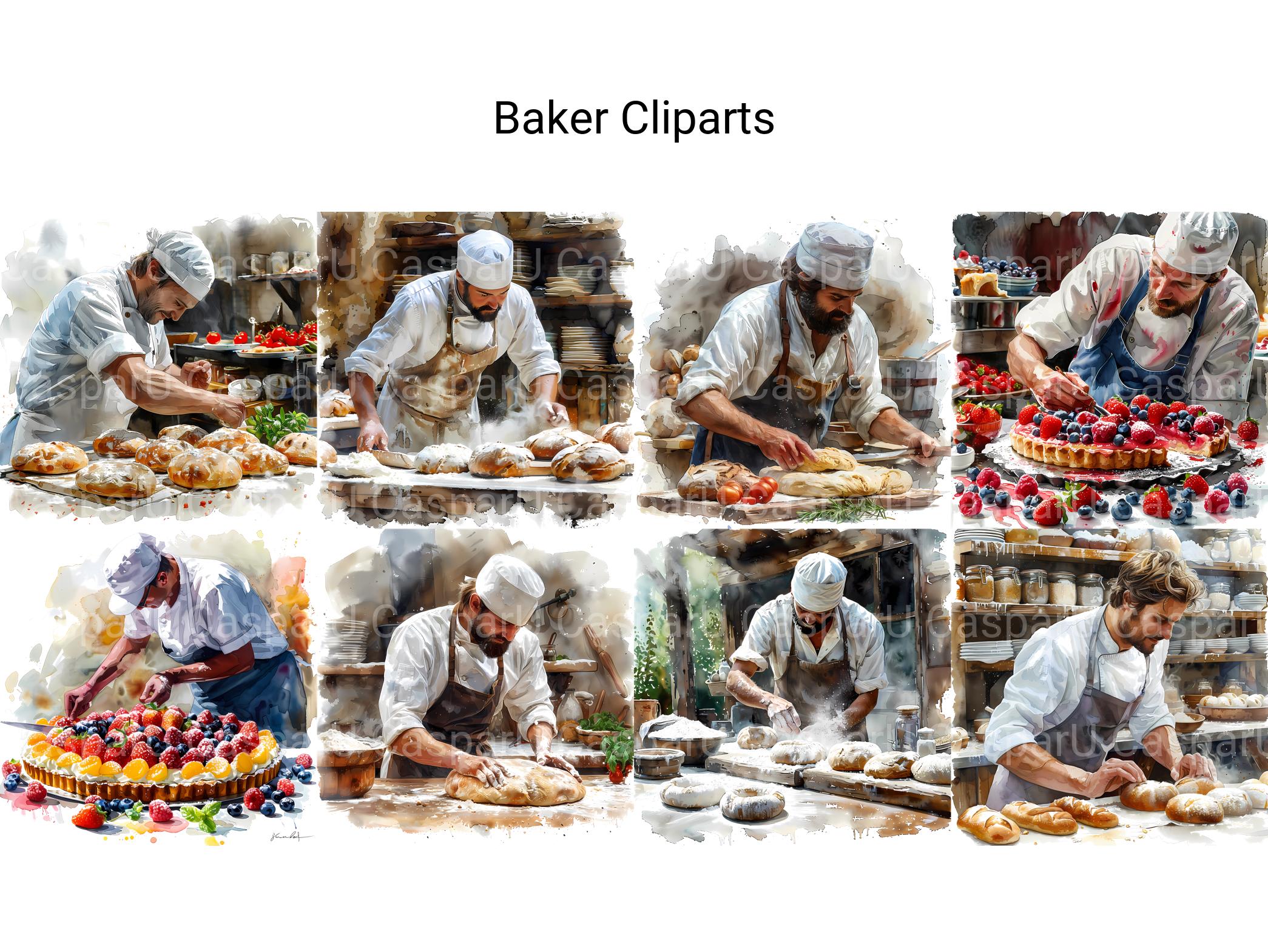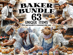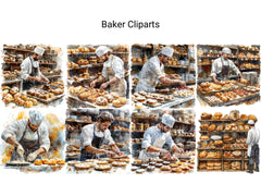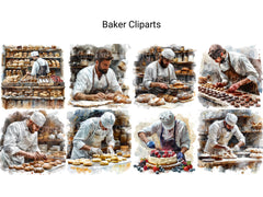 Our baker-themed digital cliparts feature delicious pastries, baking tools, and recipe cards. Perfect for decorating cooking blogs, recipe books, and culinary presentations. These cliparts add a sweet touch to any baking-related project.