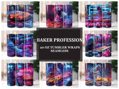 Experience the world of baking with our seamless tumbler wrap, showcasing vibrant images of desserts, kitchen tools, and baking elements. Ideal for bakers and food enthusiasts, it adds a sense of delicious creativity to your drinkware. Honor the skill of bakers with this engaging design.