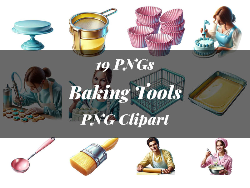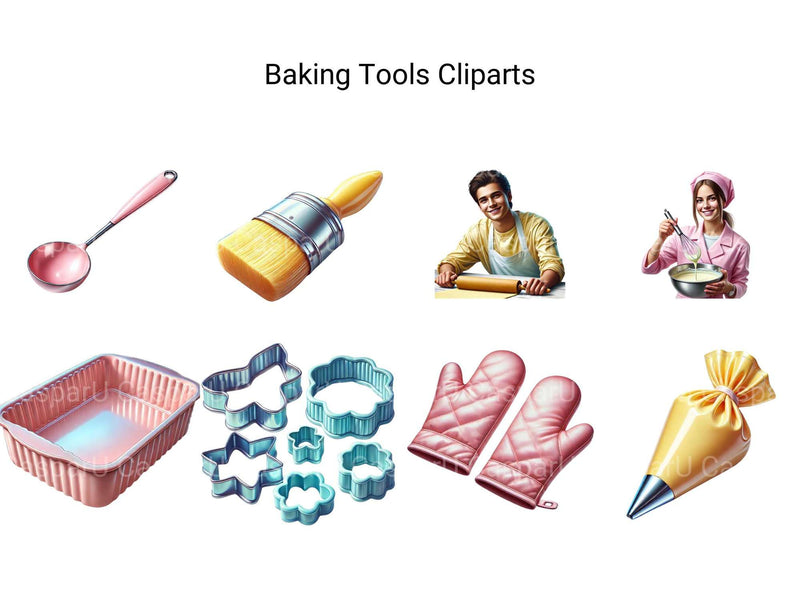 Bake with love using this Baking Tools Clipart set, featuring essential designs, ideal for kitchen crafts.