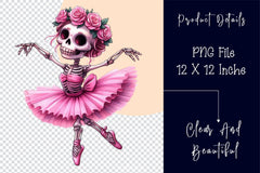 Dance with this Ballerina Skeleton Clipart Bundle, featuring graceful gothic ballet designs, perfect for spooky performing arts crafts.