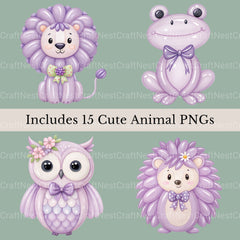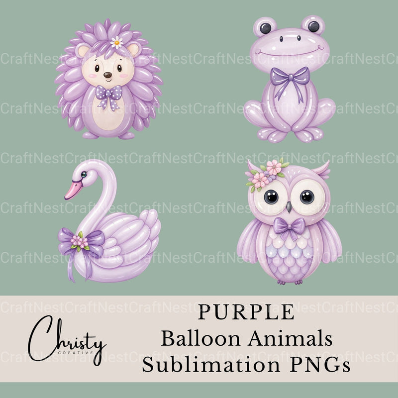 Twist with this Balloon Animals Purple 15 Clipart Bundle, featuring purple balloon animal designs, perfect for birthday color crafts.