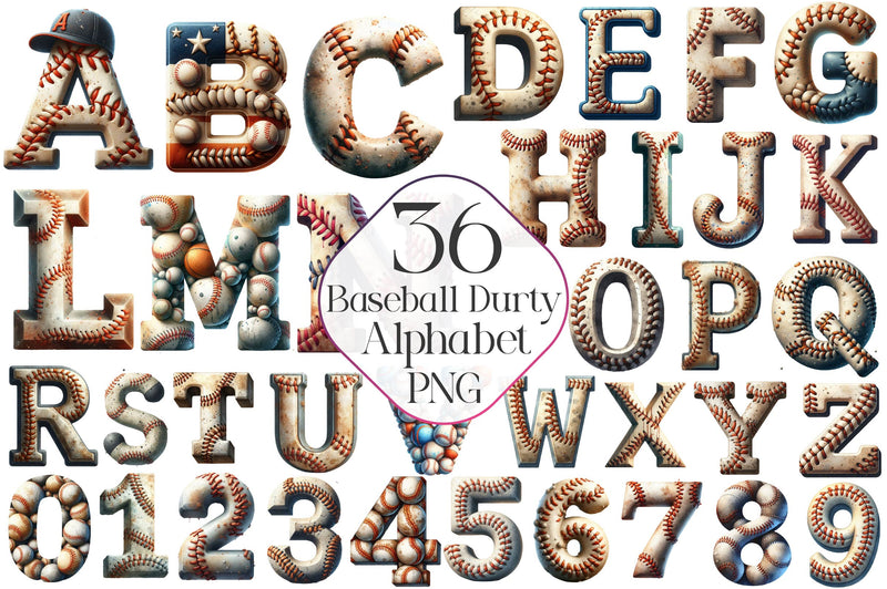 Play with this Baseball Dirty Alphabet Clipart Bundle, featuring sports letter designs, perfect for sports alphabet crafts.