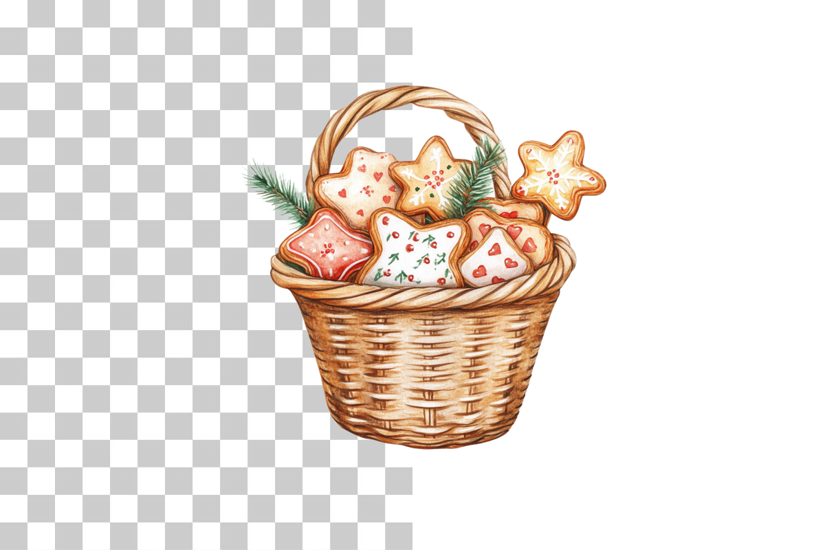 Delight in our Basket with Cookies Clipart Bundle, featuring charming cookie designs perfect for festive projects and creative crafts. Ideal for digital scrapbooking, invitations, and more, this bundle adds a sweet touch to any creation. Unleash your creativity with these high-quality, versatile clipart images, perfect for holiday cards, party decor, and personalized gifts. Elevate your designs with this must-have collection, ensuring your projects stand out with a delightful, homemade feel.
