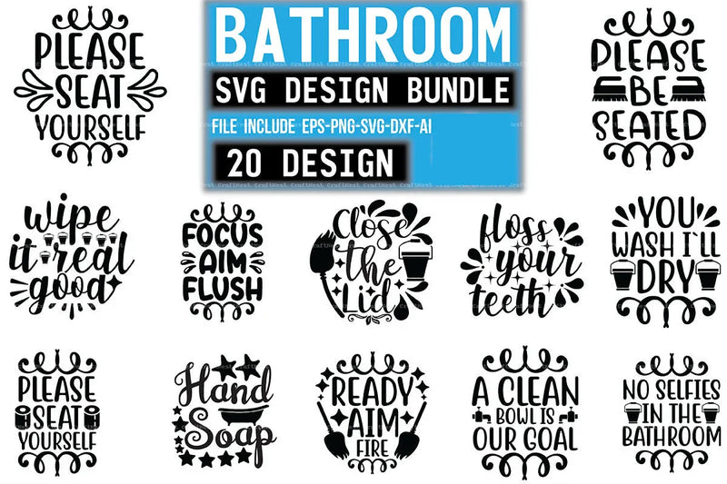 Transform your space with our Bathroom Design SVG Bundle, featuring intricate and stylish designs perfect for creating personalized bathroom decor. Ideal for DIY enthusiasts and crafters looking to add a unique touch to their home projects.
