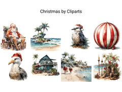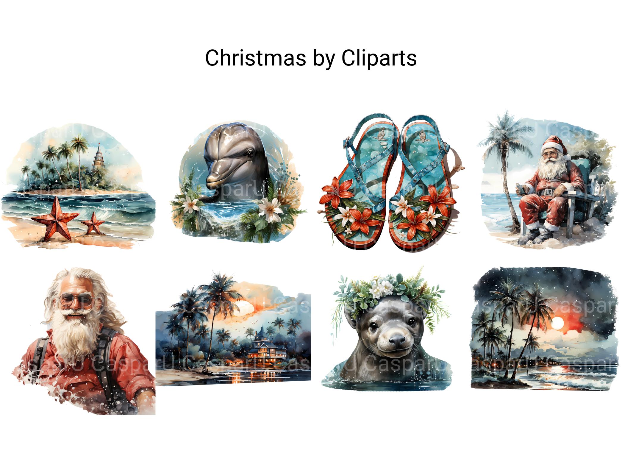 Escape to a tropical paradise with our charming Beach Christmas clip art. These digital illustrations capture the holiday spirit against a backdrop of sun, sand, and surf, offering a unique and refreshing take on Christmas. Whether for cards, party invitations, or vacation-themed projects, these beach-inspired graphics will bring a touch of coastal cheer to your holiday designs, inviting everyone to celebrate Christmas with a splash of seaside fun.